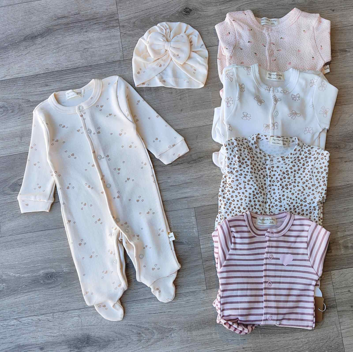 Человечек Murat Baby "Сердце+бантики" микс цветов, девочка 0 месяцев оптом уп. - 5 шт.
