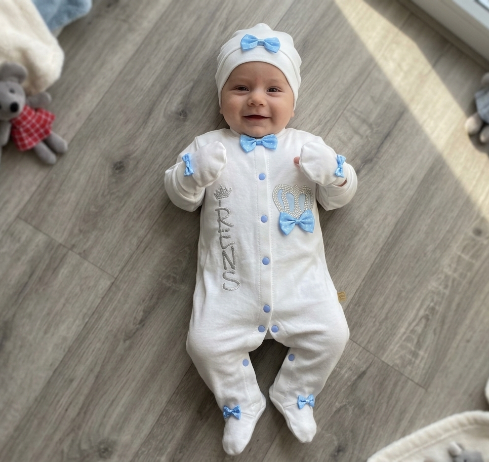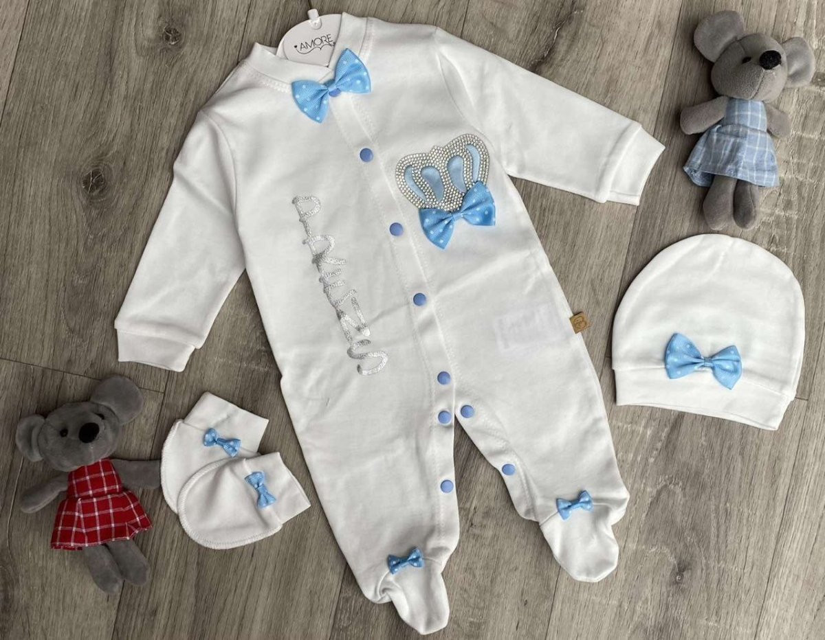 Человечек Waffle "Корона+принц" белый , мальчик 0-3-6 месяцев оптом уп. - 3 шт.