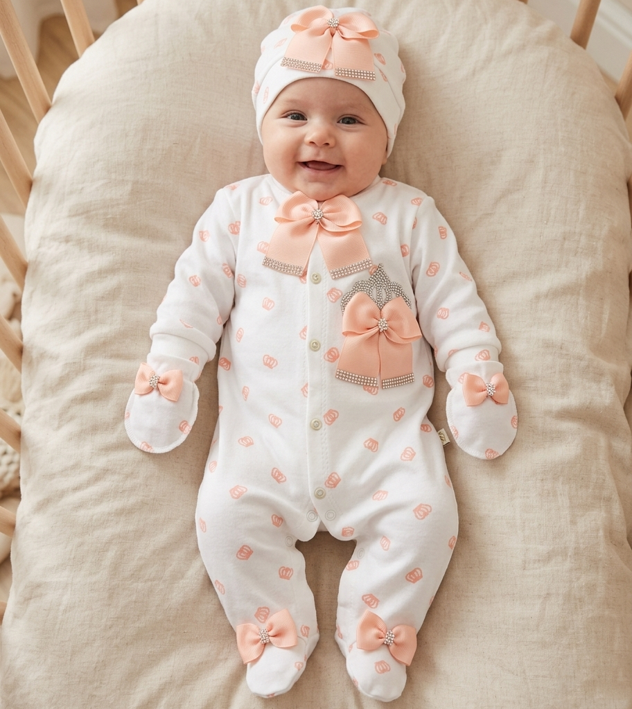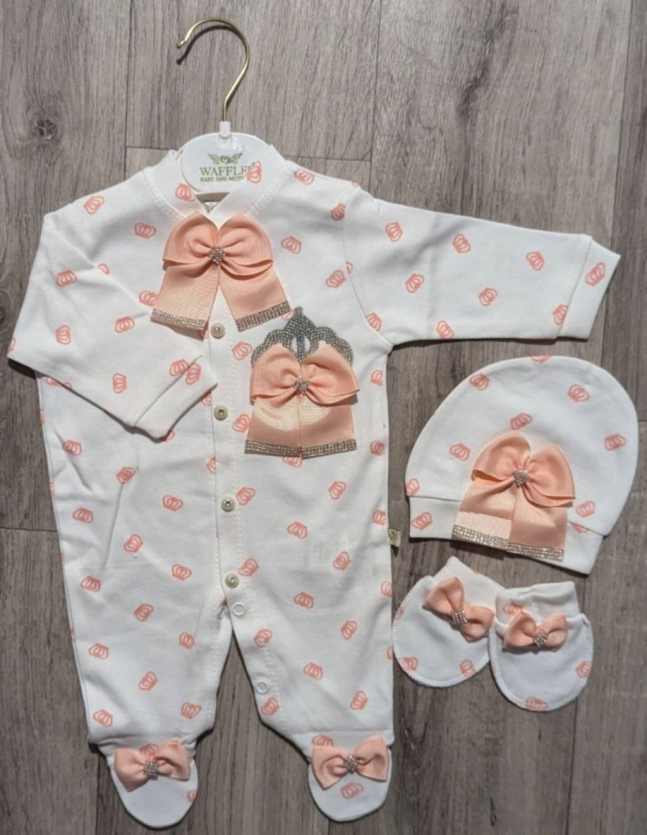 Человечек Waffle "Персиковые коронки" белый , девочка 0-3-6 месяцев оптом уп. - 3 шт.