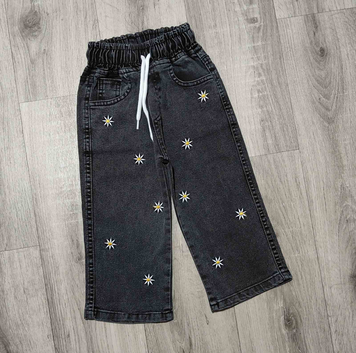 Джинсы Hiwro "Ромашки" серые, девочка 1-2-3-4 лет оптом уп. - 4 шт.