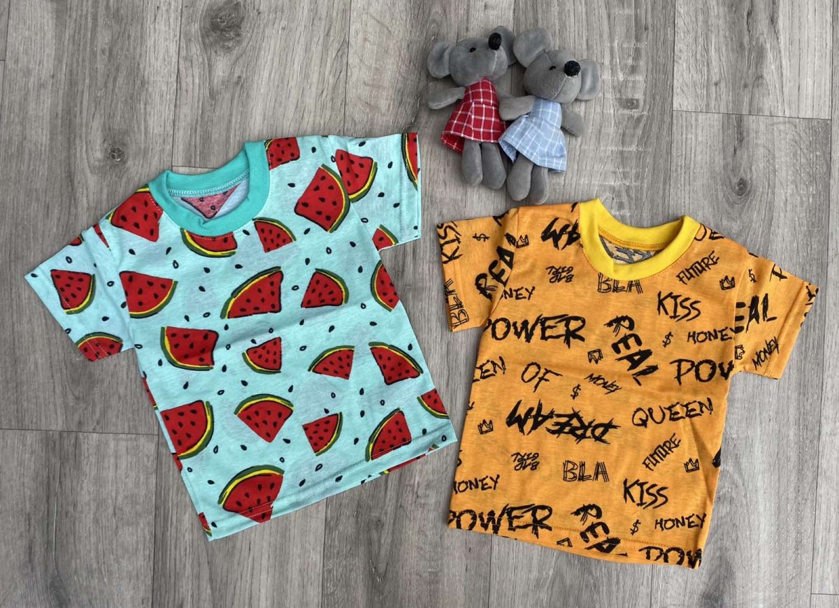Футболка «Арбузики» микс цветов, мальчик+девочка 1-2-3-4-5 лет оптом уп. - 10 шт.