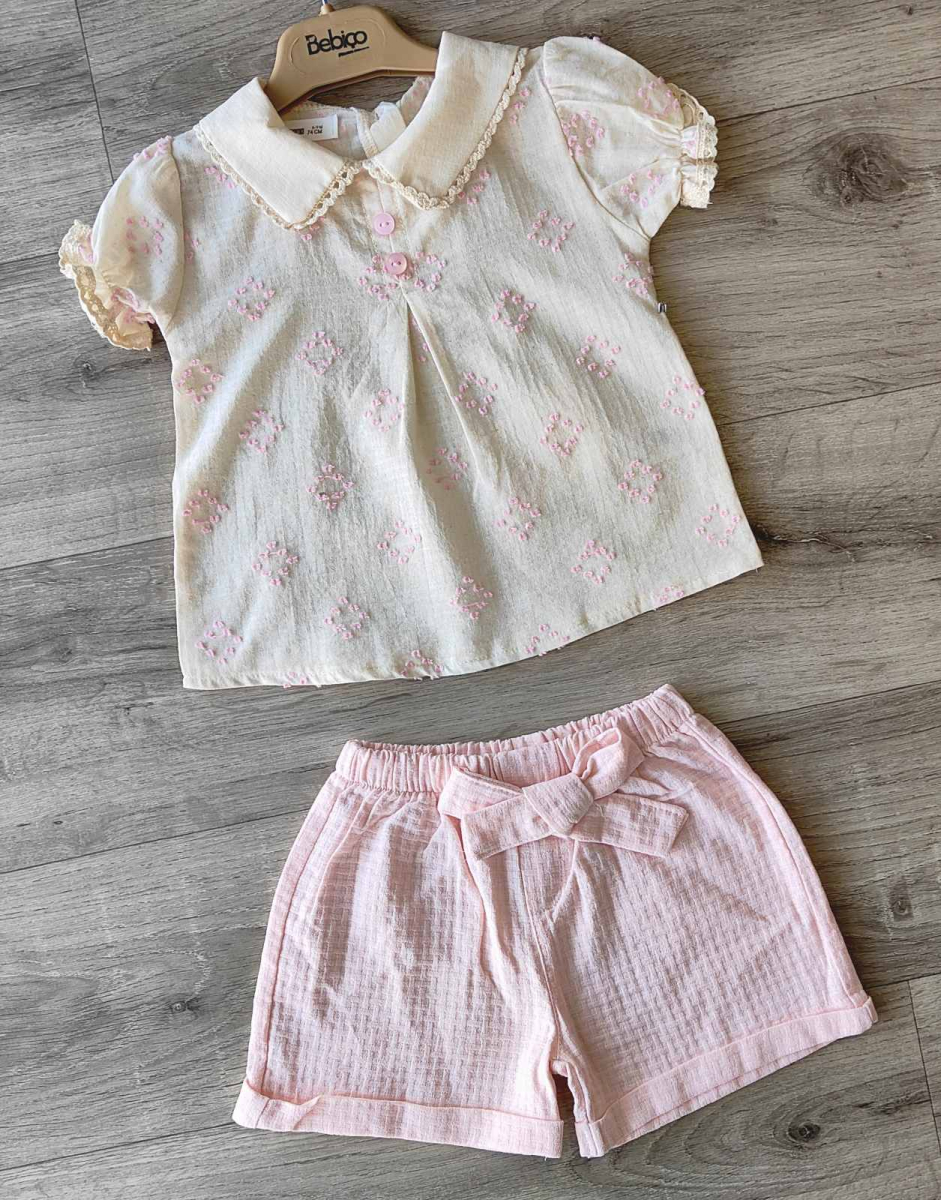 Костюм Bebico "Квадратики" розовый, девочка 9-12-18-24 месяцев оптом уп. - 4 шт.
