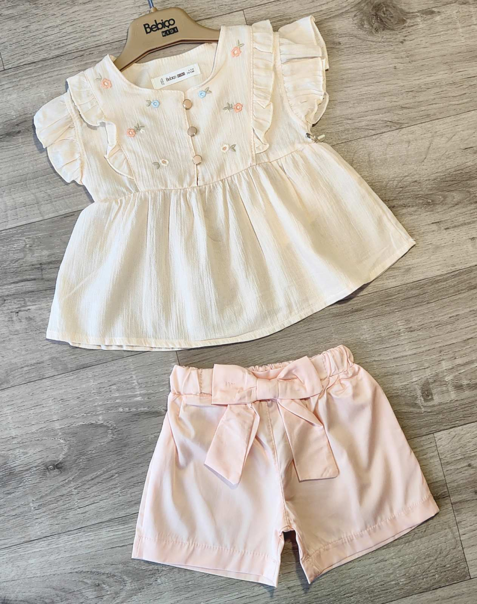 Костюм Bebico "Рюши+ромашки" персиковый, девочка 9-12-18-24 месяцев оптом уп. - 4 шт.