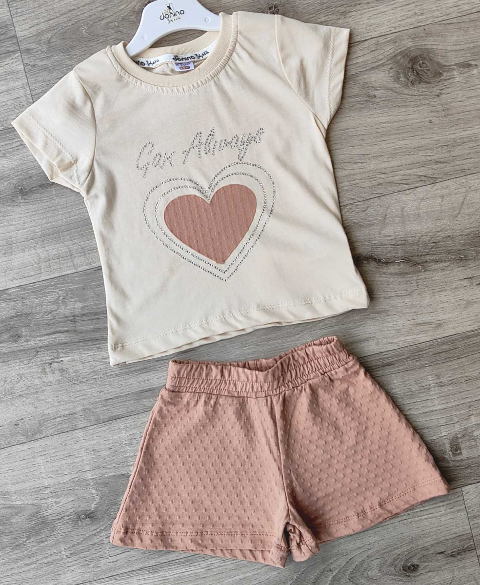 Костюм Donino «Сердце» коричневый(терракотовый), девочка 6-9-12-18 месяцев оптом уп. - 4 шт.