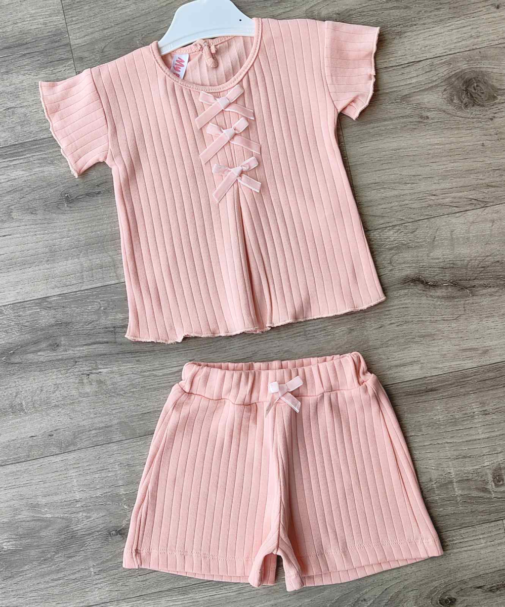 Костюм My Bella «Бантики» персиковый, девочка 6-9-12-18 месяцев оптом уп. - 4 шт.