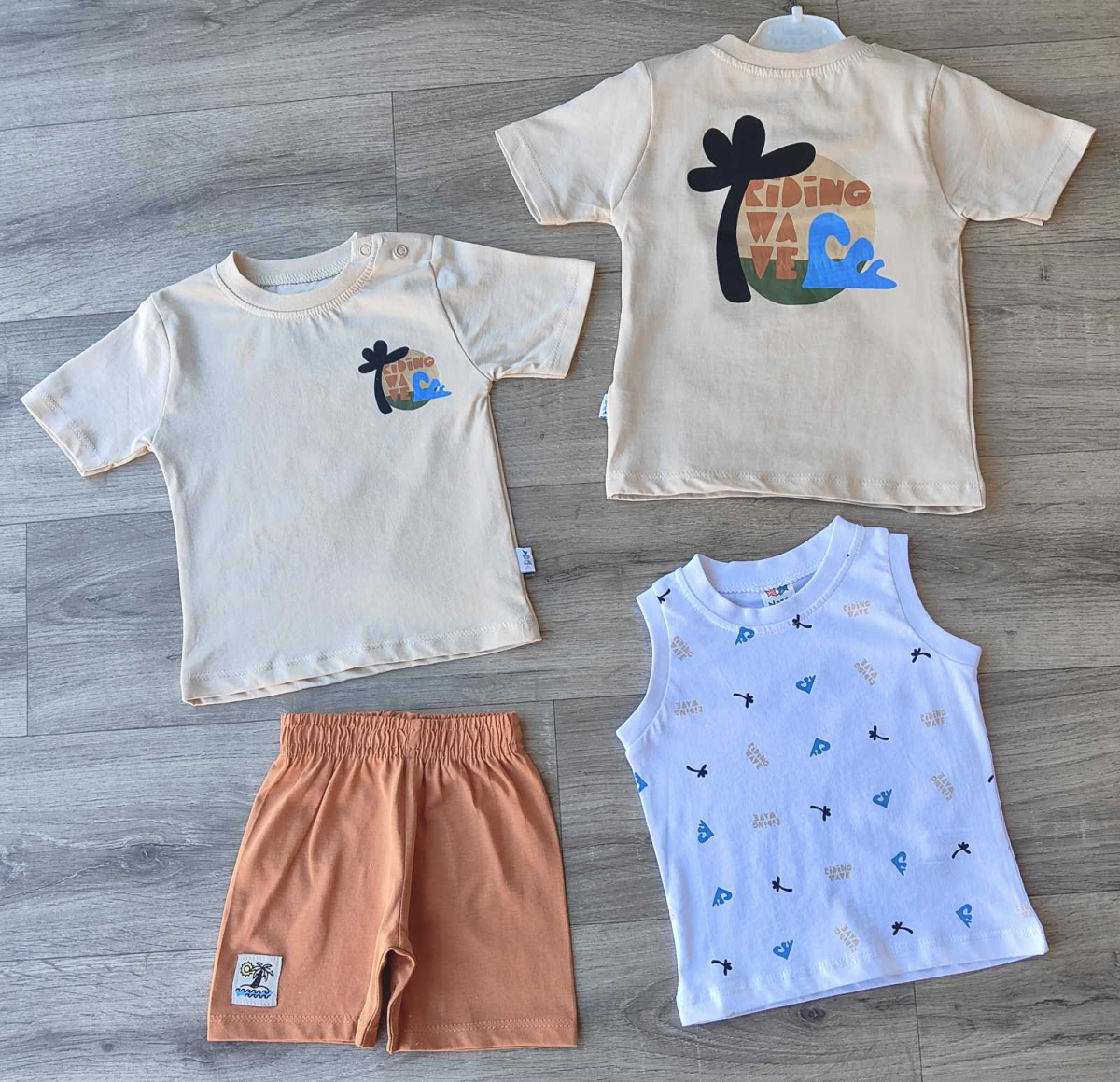 Костюм Nazar Baby "Riding wave" бежевый, мальчик 9-12-18-24 месяцев оптом уп. - 4 шт.