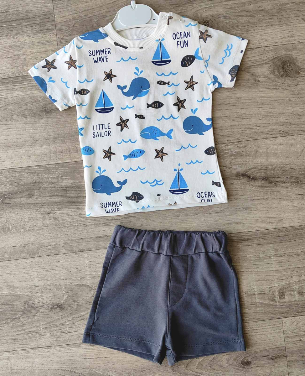 Костюм СGS "Киты" серый , мальчик 6-9-12-18 месяцев оптом уп. - 4 шт.