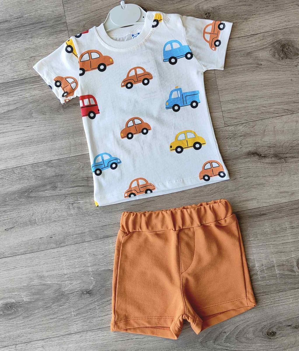 Костюм СGS "Машинки" коричневый , мальчик 6-9-12-18 месяцев оптом уп. - 4 шт.
