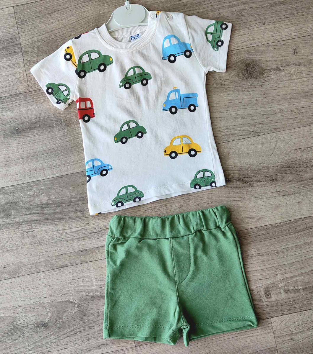 Костюм СGS "Машинки" зеленый , мальчик 6-9-12-18 месяцев оптом уп. - 4 шт.