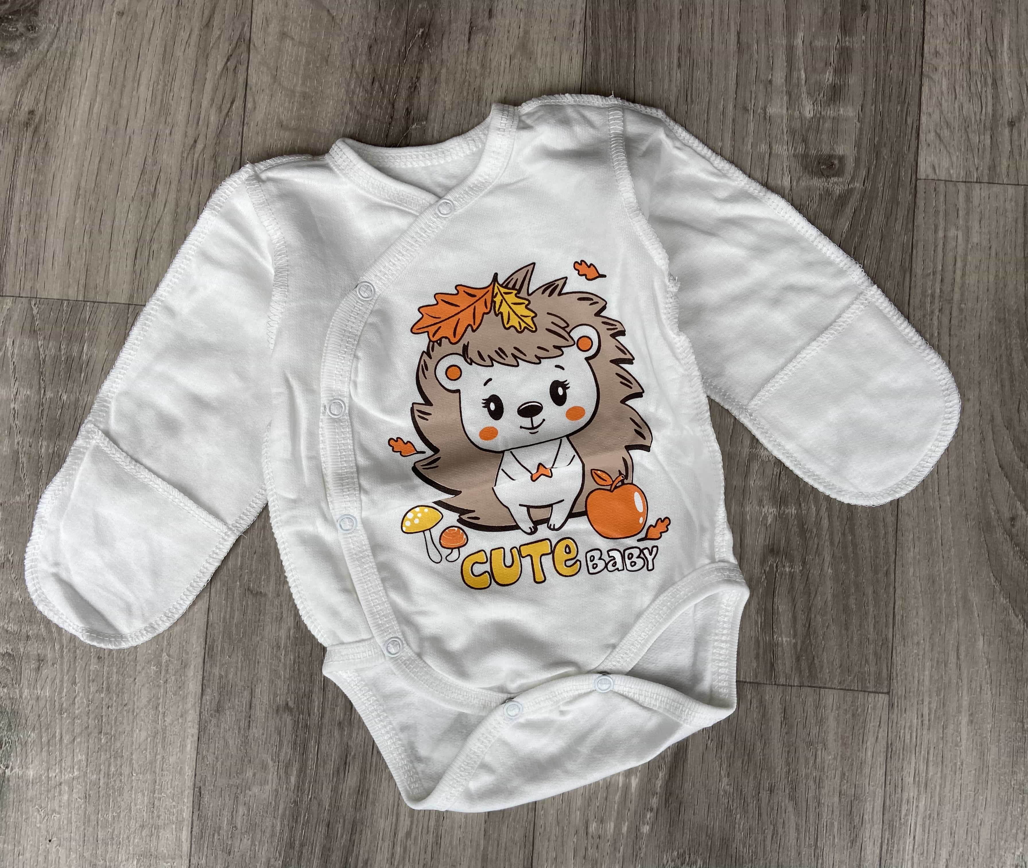 Боди "Ёжик", молочный, унисекс 0-3 месяцев оптом уп. - 4 шт.