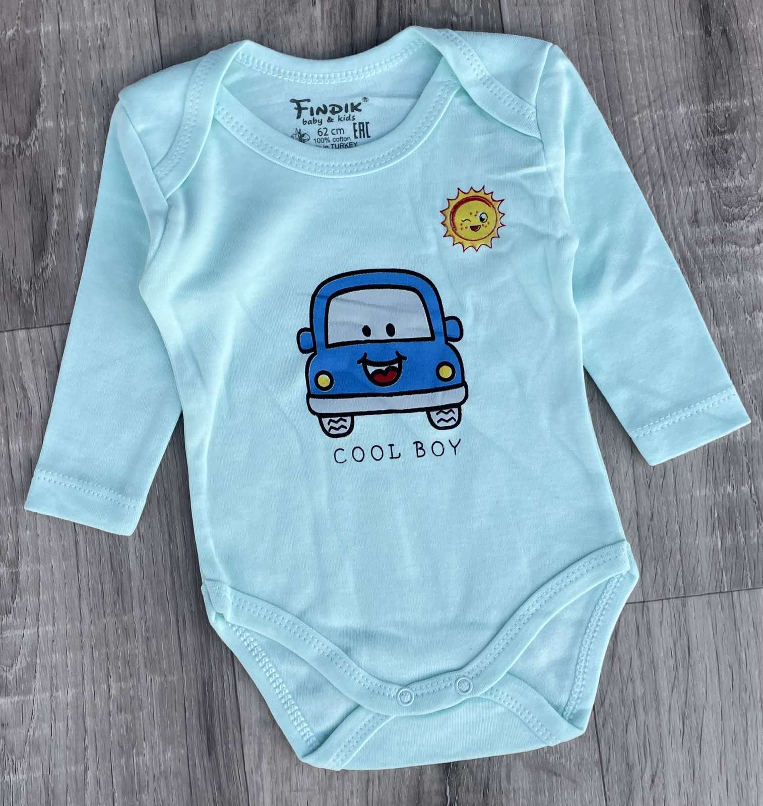 Боди Findik «Cool Boy» бирюзовый, мальчик 3-6-9-12-18 месяцев оптом уп. - 5 шт.