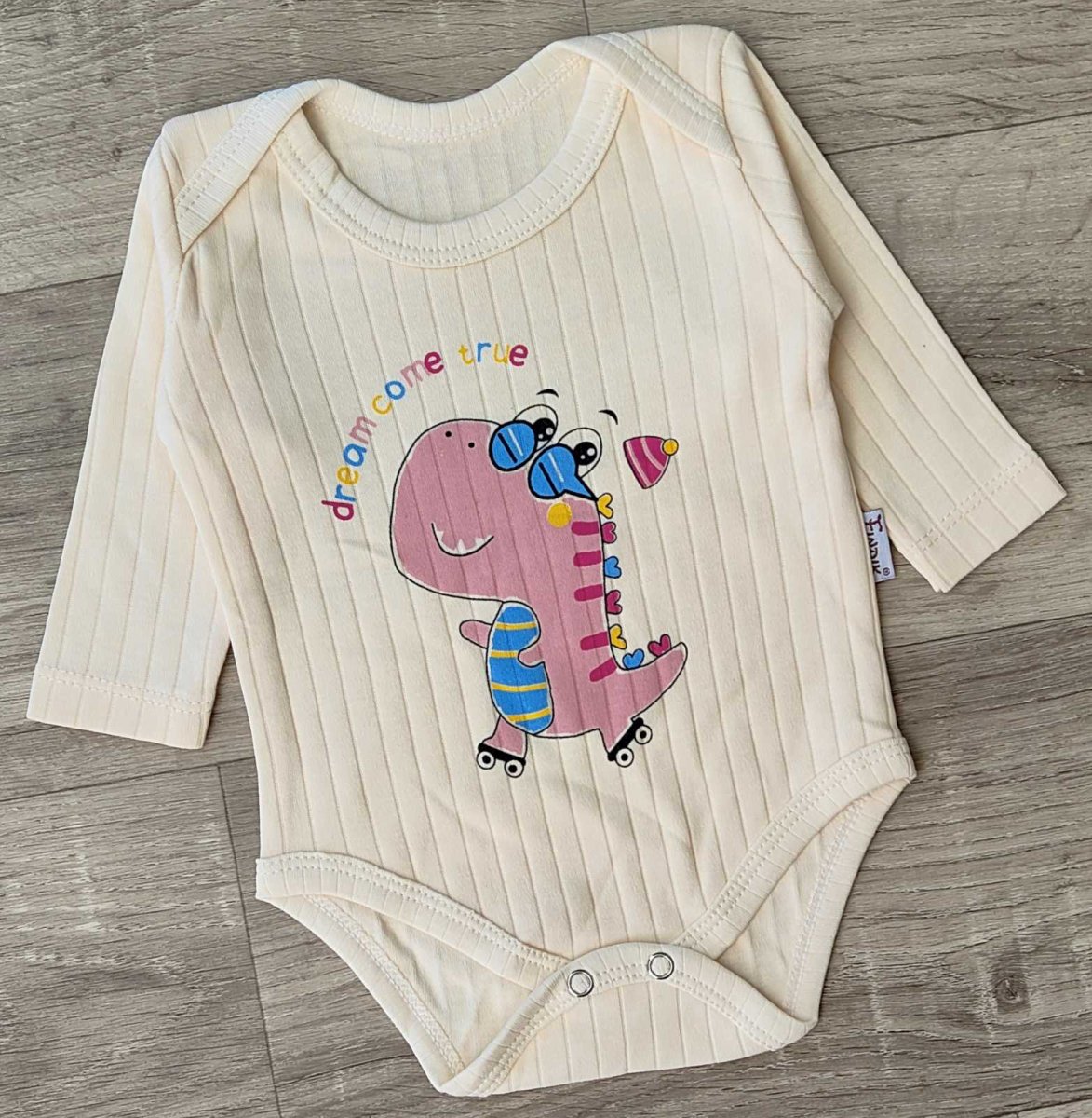 Боди Findik "Динозаврик" молочный, девочка 3-6-9-12-18 месяцев оптом уп. - 5 шт.