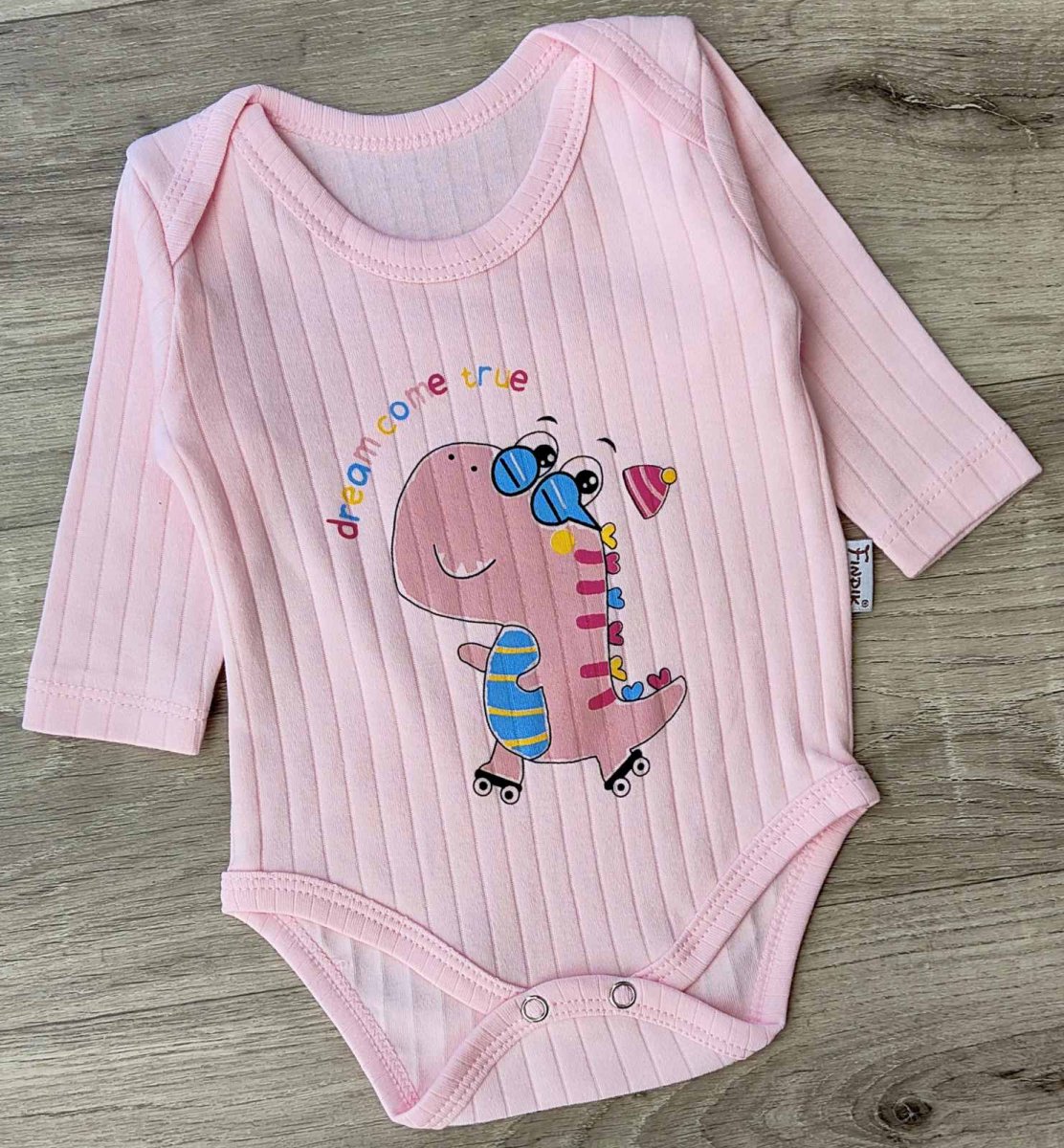 Боди Findik "Динозаврик" розовый, девочка 3-6-9-12-18 месяцев оптом уп. - 5 шт.