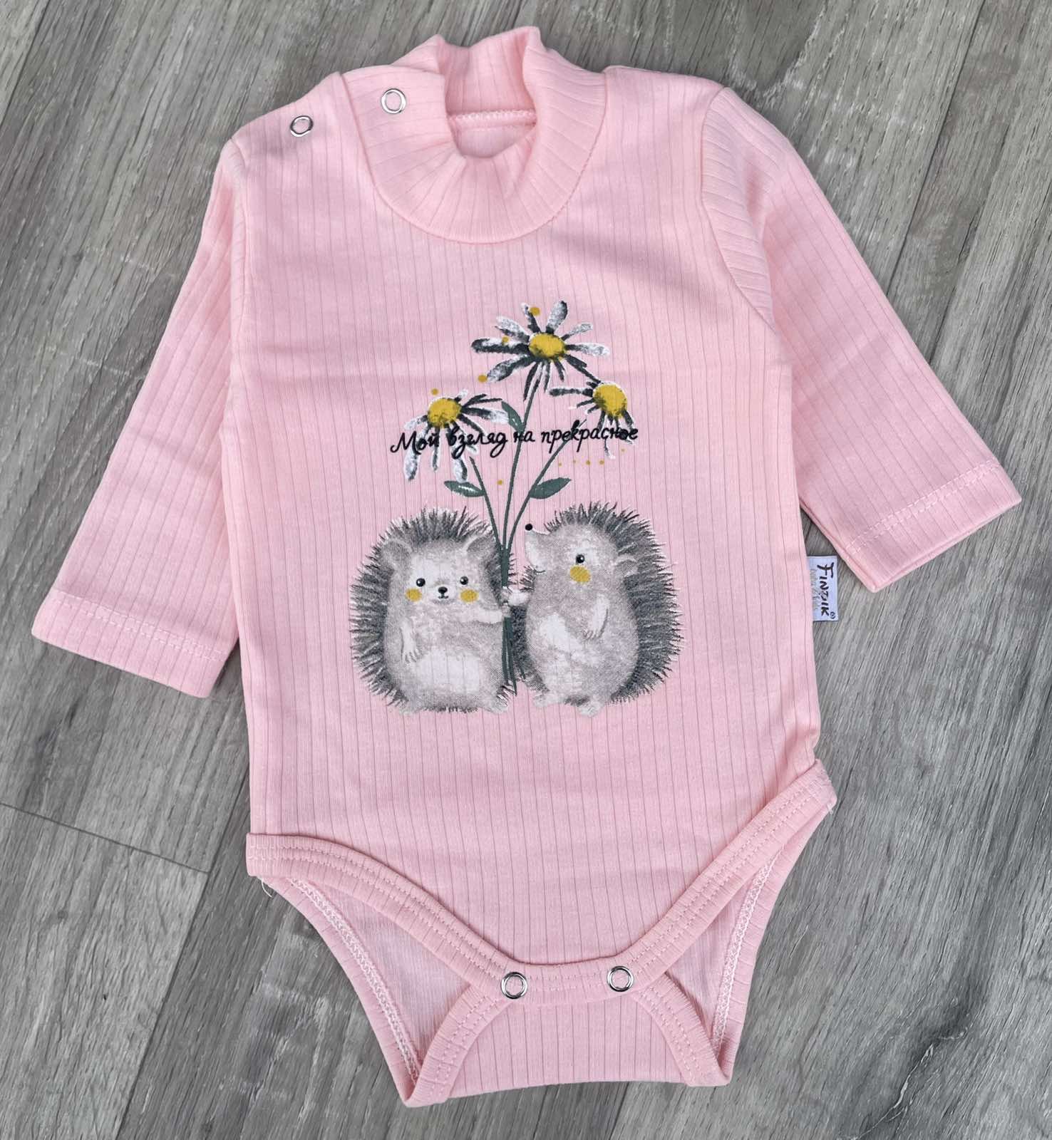 Боди Findik «Ёжики» персиковый, девочка 3-6-9-12-18 месяцев оптом уп. - 5 шт.