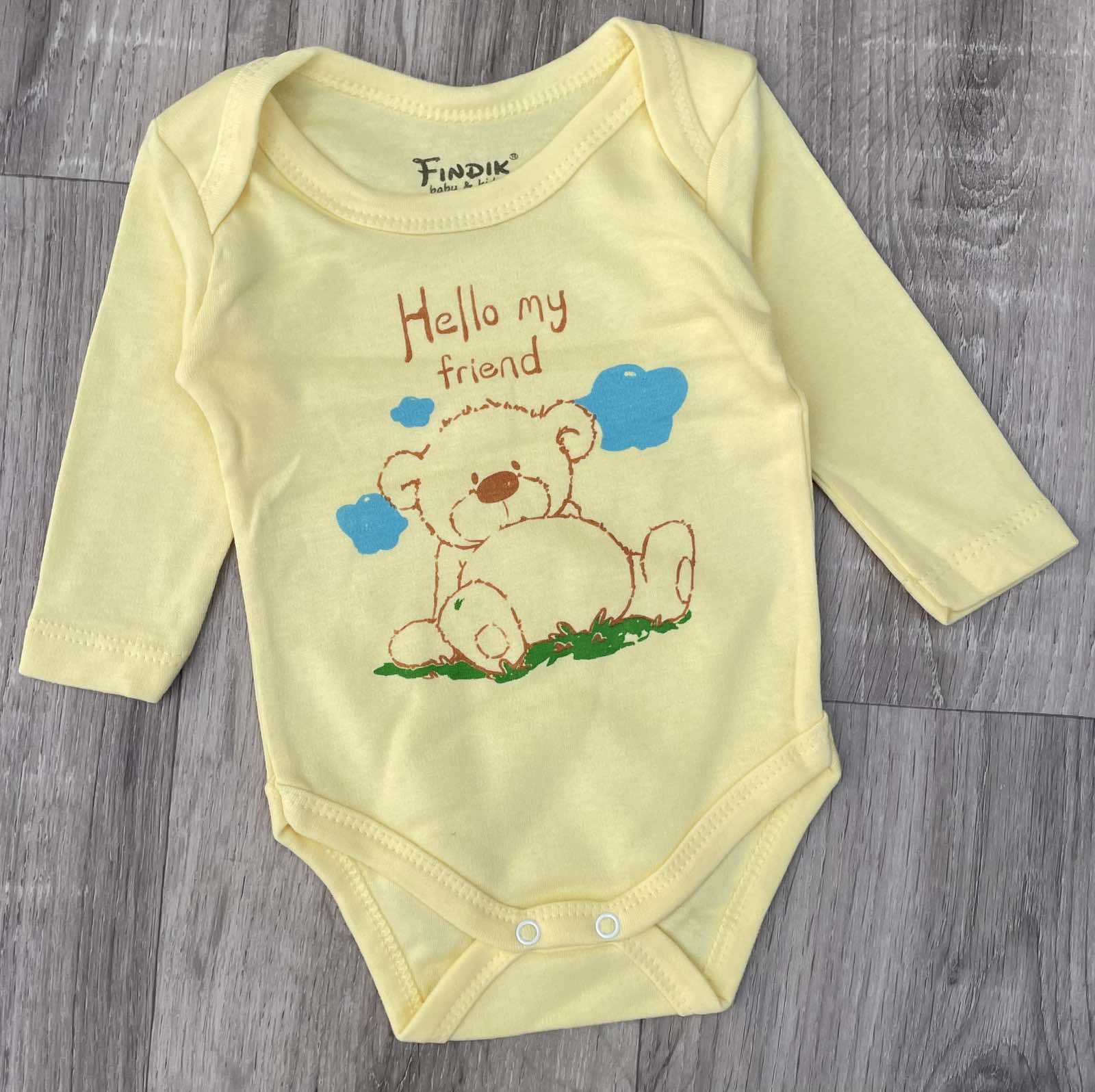 Боди Findik «Hello my friend» жёлтый, мальчик 3-6-9-12-18 месяцев оптом уп. - 5 шт.