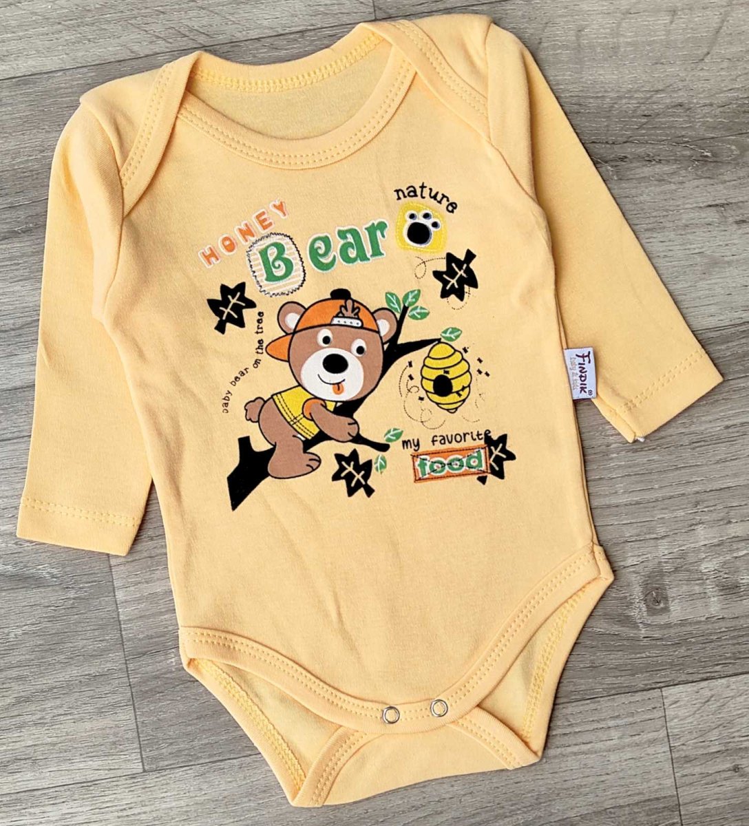 Боди Findik «Медвежонок» оранжевый, мальчик 3-6-9-12-18 месяцев оптом уп. - 5 шт.