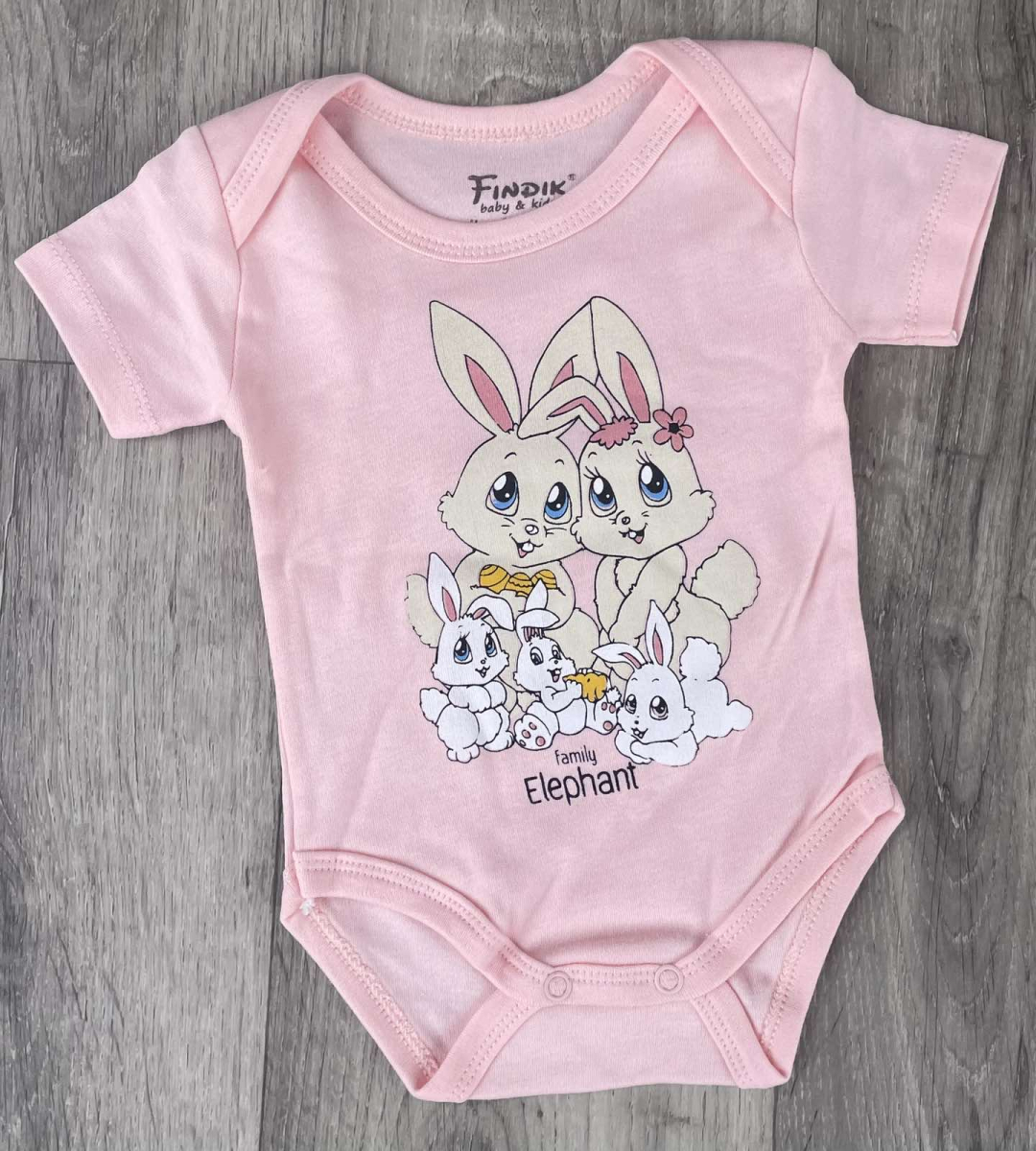 Боди Findik «Семья зайчиков» персиковый, девочка 3-6-9-12 месяцев оптом уп. - 5 шт.