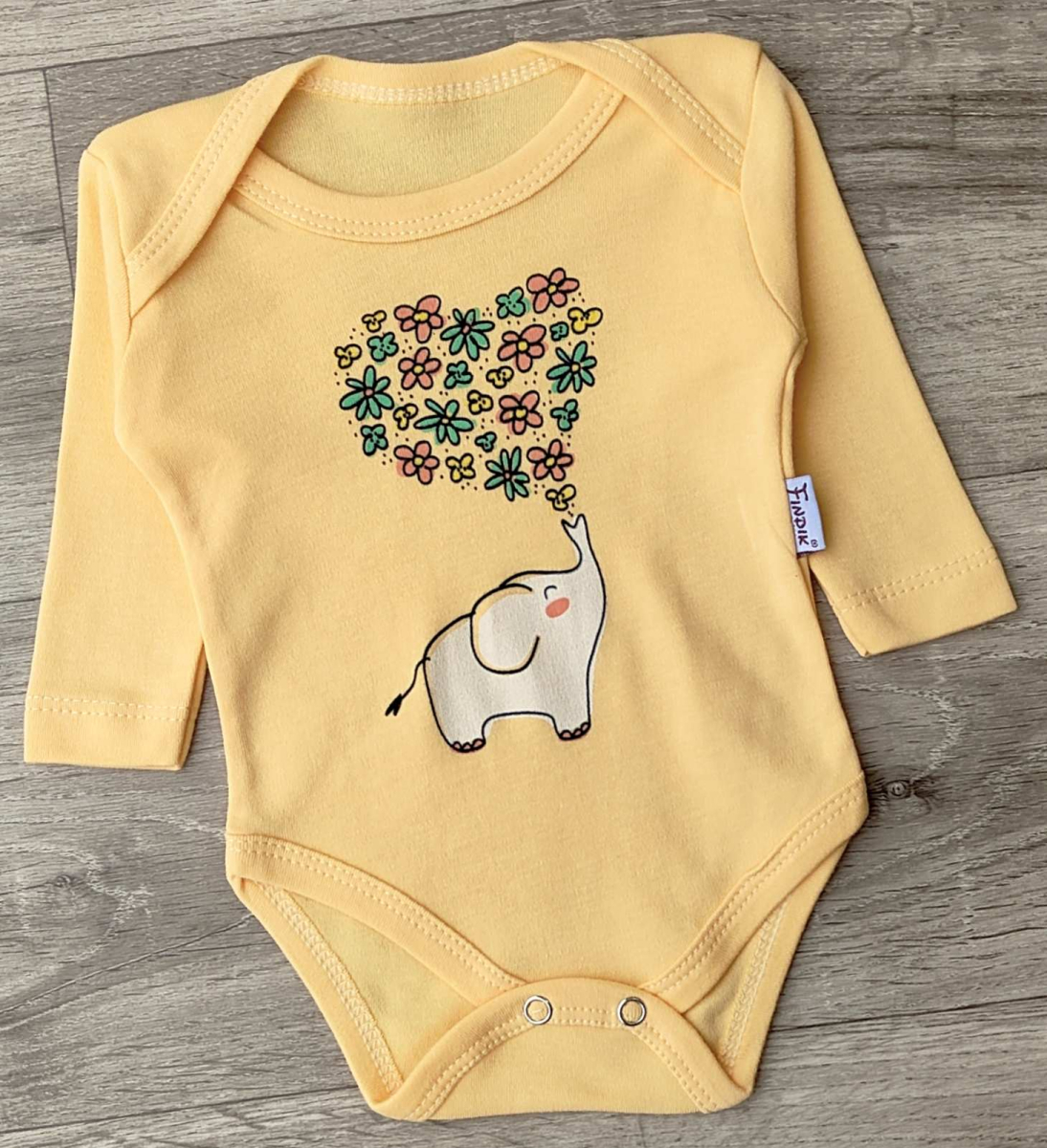 Боди Findik "Слоник", желтый, девочка 3-6-9-12-18 месяцев оптом уп. - 5 шт.
