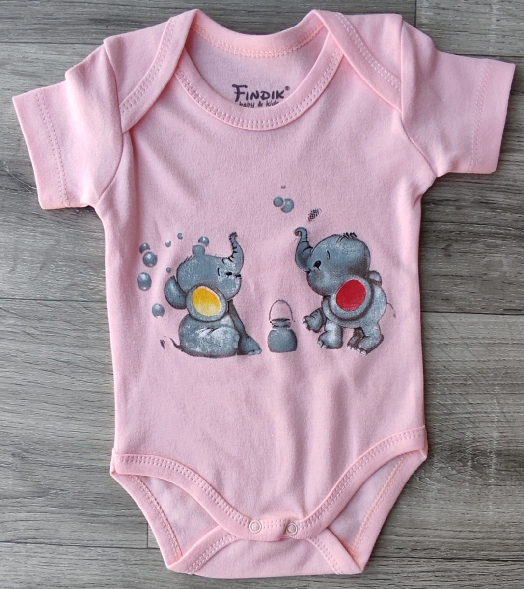 Боди Findik «Слоники» персиковый, девочка 3-6-9-12-18 месяцев оптом уп. - 5 шт.