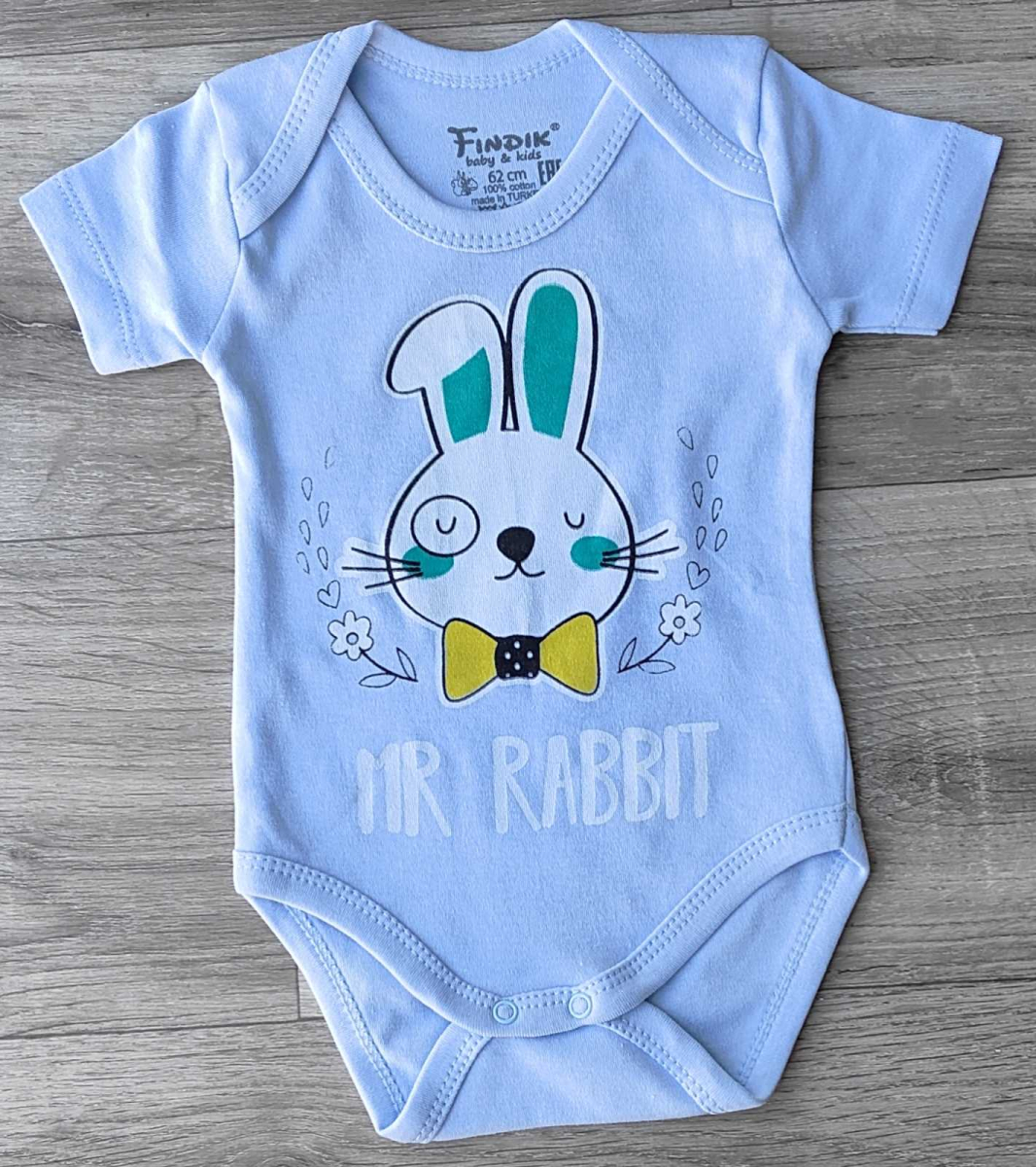 Боди Findik «Зайчик» голубой, унисекс 3-6-9-12-18 месяцев оптом уп. - 5 шт.