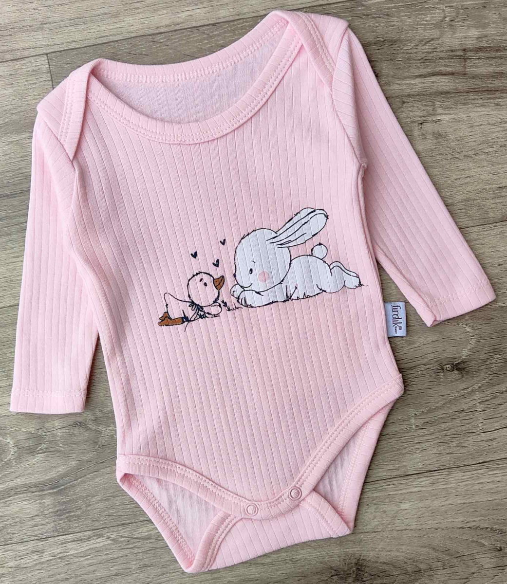 Боди Findik "Зайчик+утенок" розовый, девочка 3-6-9-12-18 месяцев оптом уп. - 5 шт.