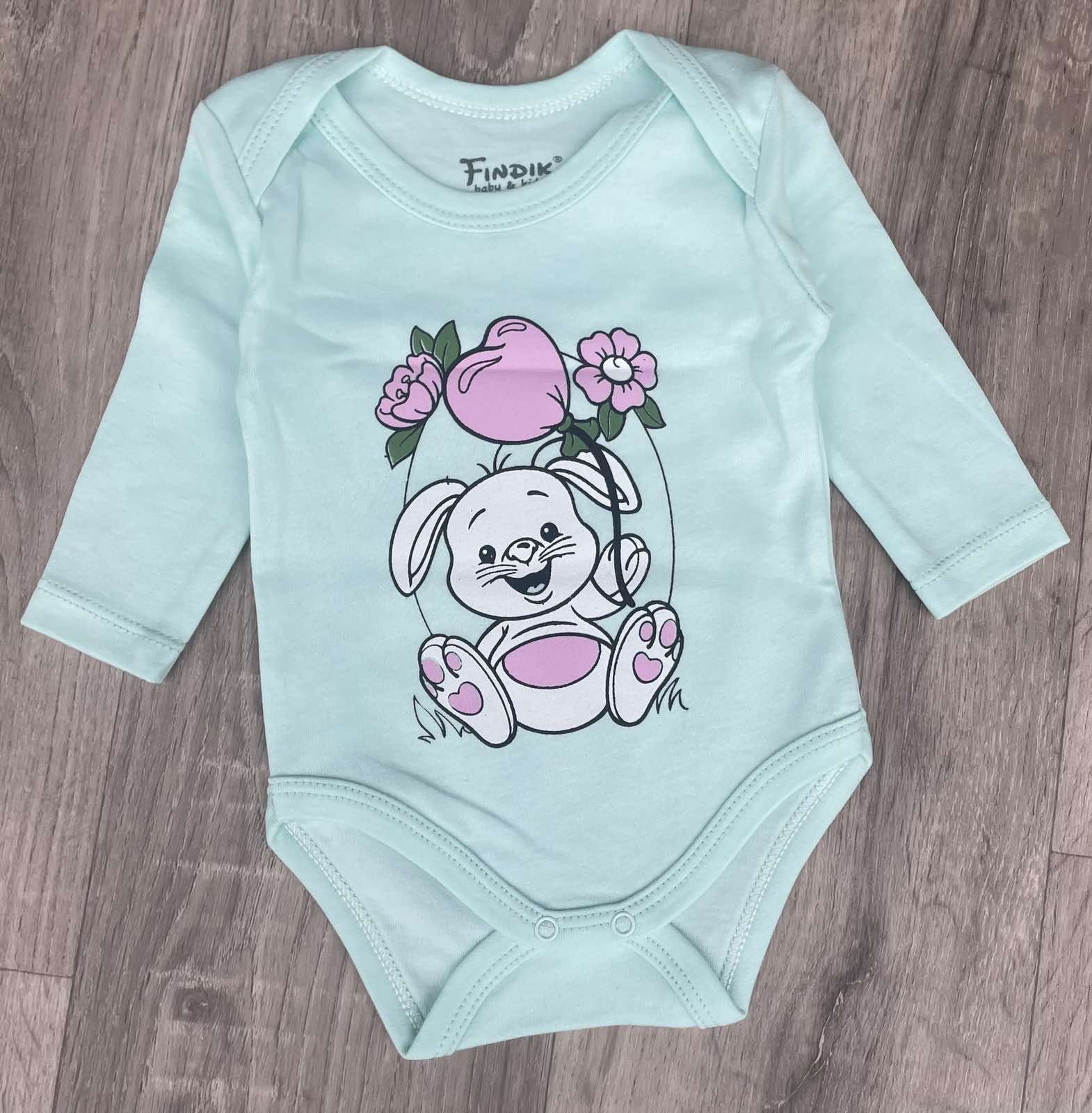 Боди Findik «Зайка» бирюзовый, девочка 3-6-9-12-18 месяцев оптом уп. - 5 шт.