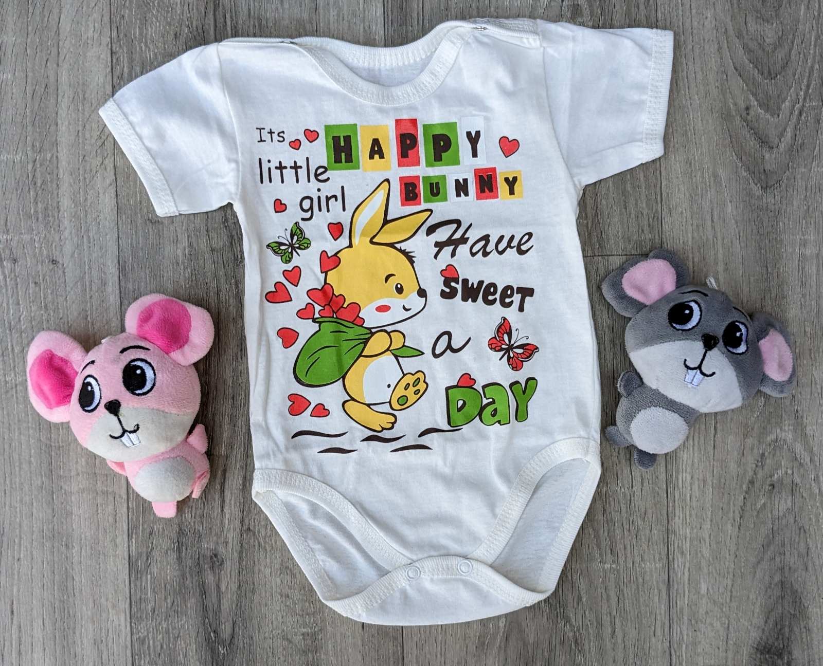 Боді "Happy Bunny" молочний, унісекс 3-6-9 місяців, фото