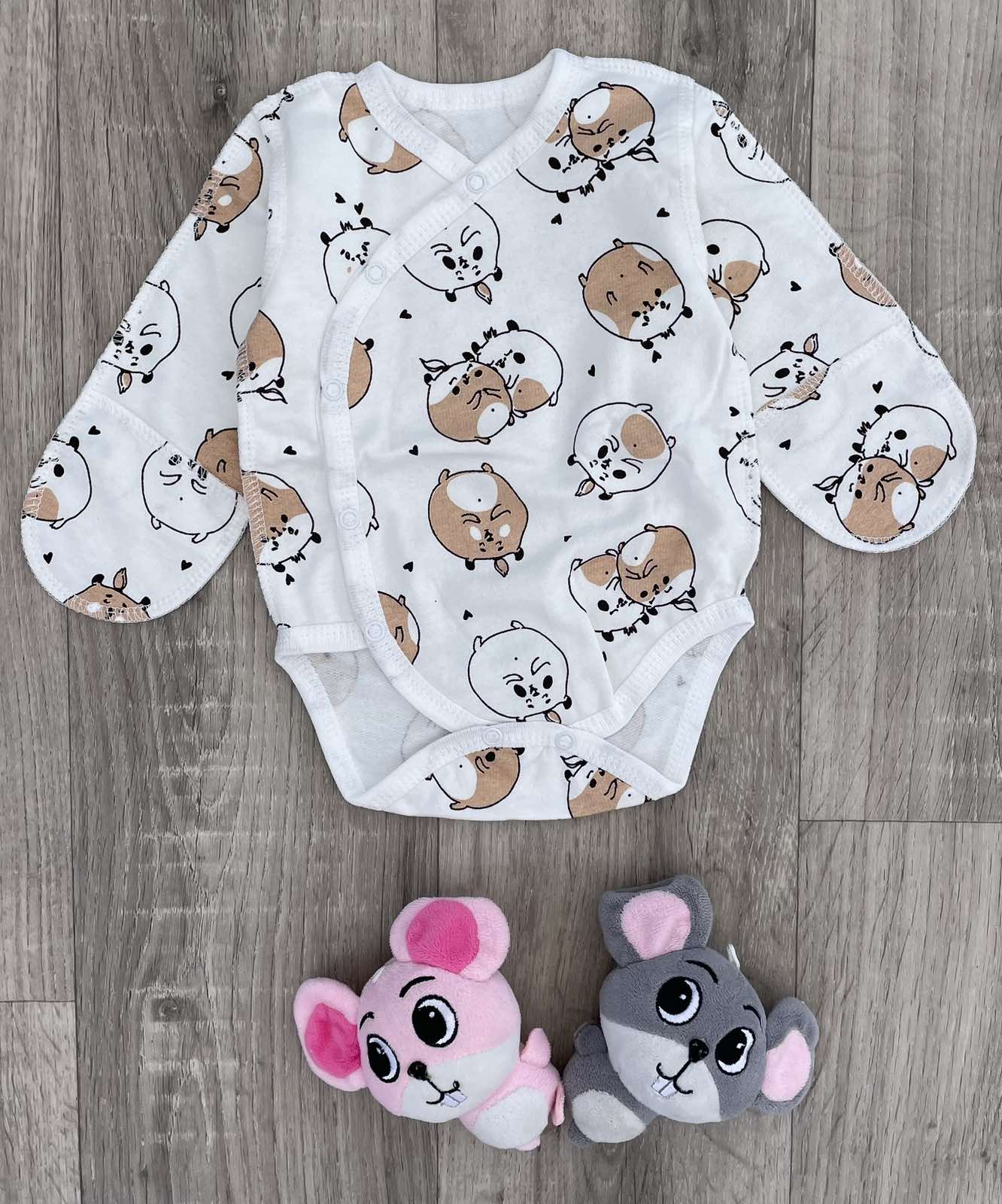 Боди "Хомячки" молочный, унисекс 0-3месяцев оптом уп. - 4 шт.