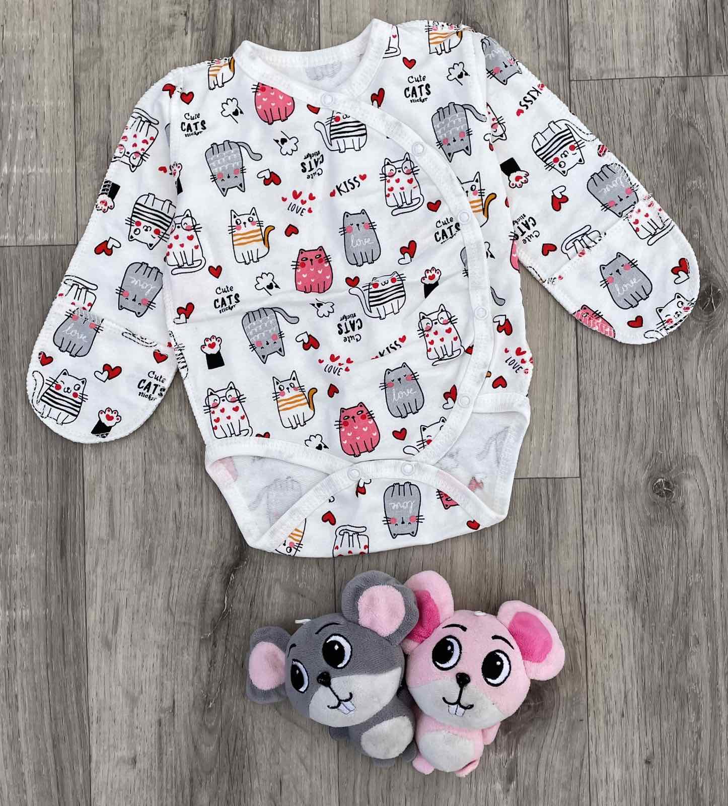 Боди "Котята" белый, девочка 0-3 месяцев оптом уп. - 4 шт.