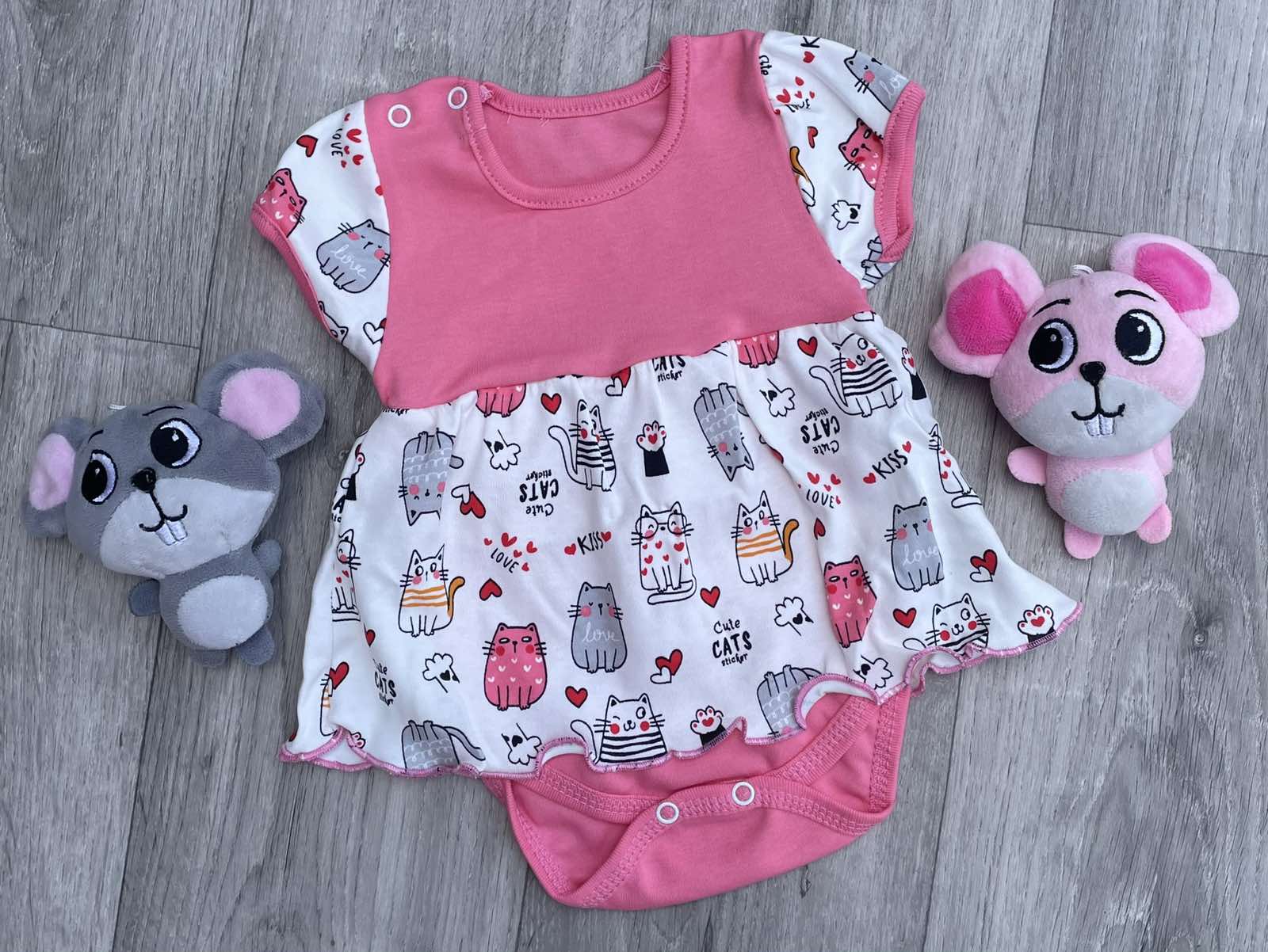 Боді "Кошенята" рожевий, дівчинка 3-6-9 місяців оптом уп. - 3 шт.