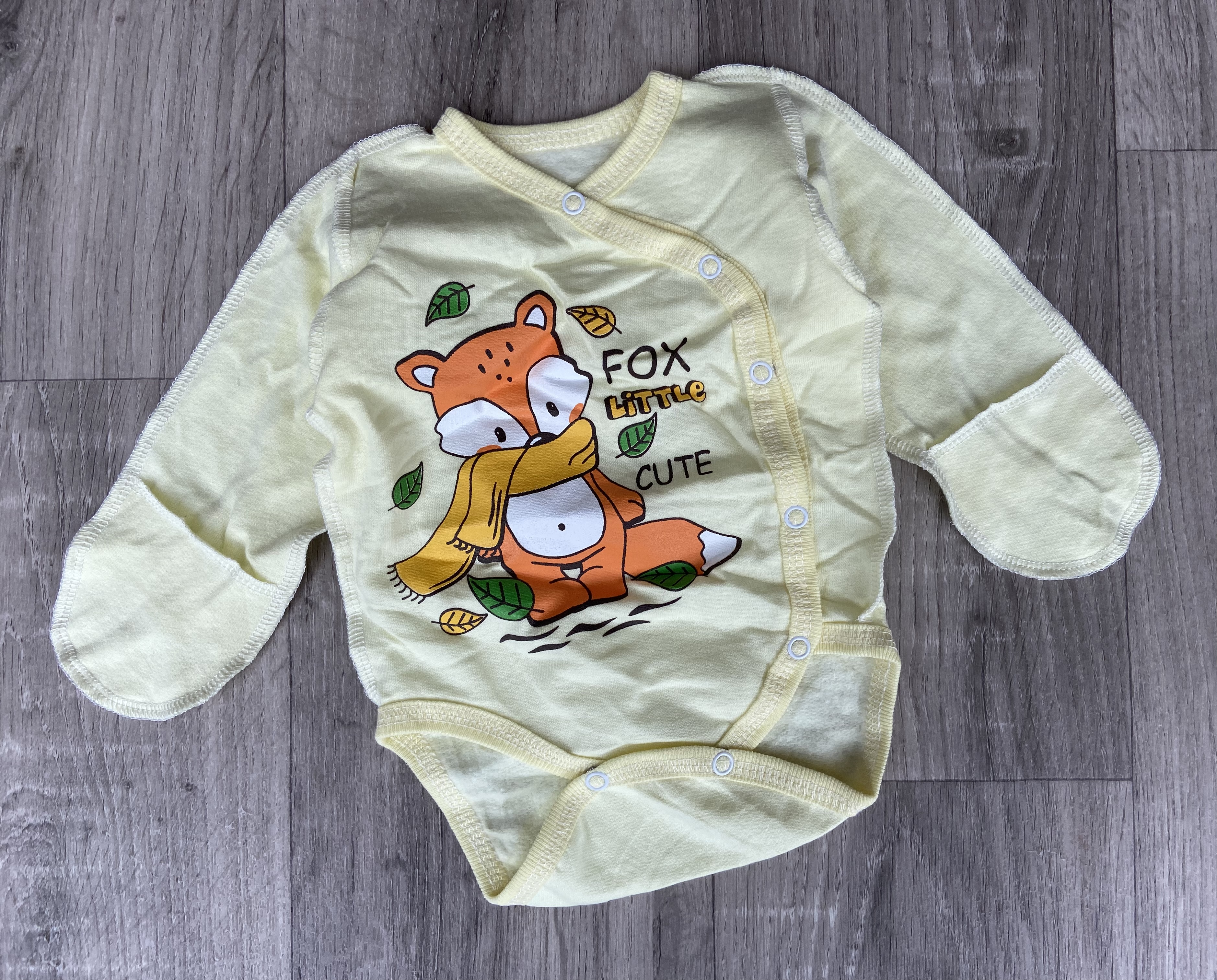 Боди "Лисичка", жёлтый, унисекс 0-3 месяцев оптом уп. - 4 шт.