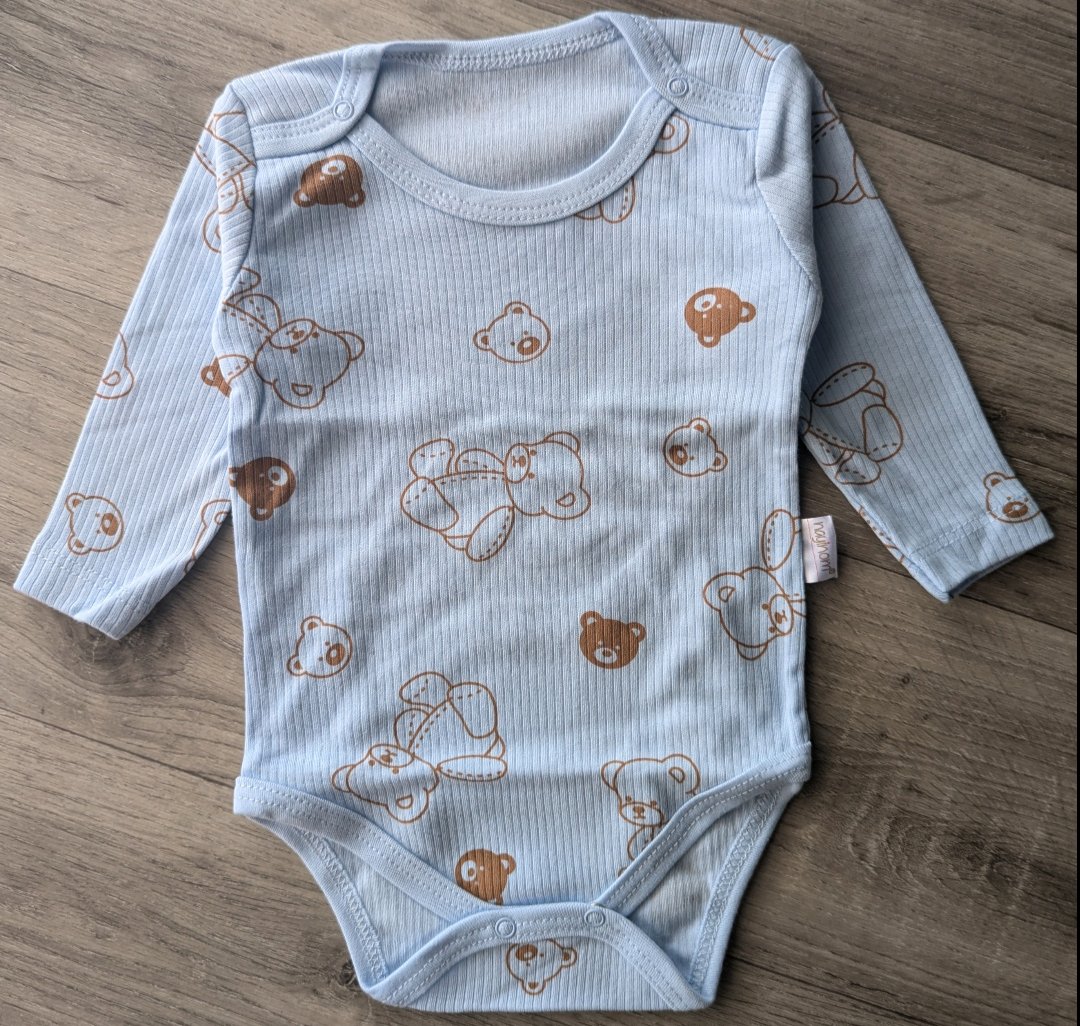 Боди Nayinom "Мишка" голубой, мальчик 0-3-6-9 месяцев оптом уп. - 4 шт.
