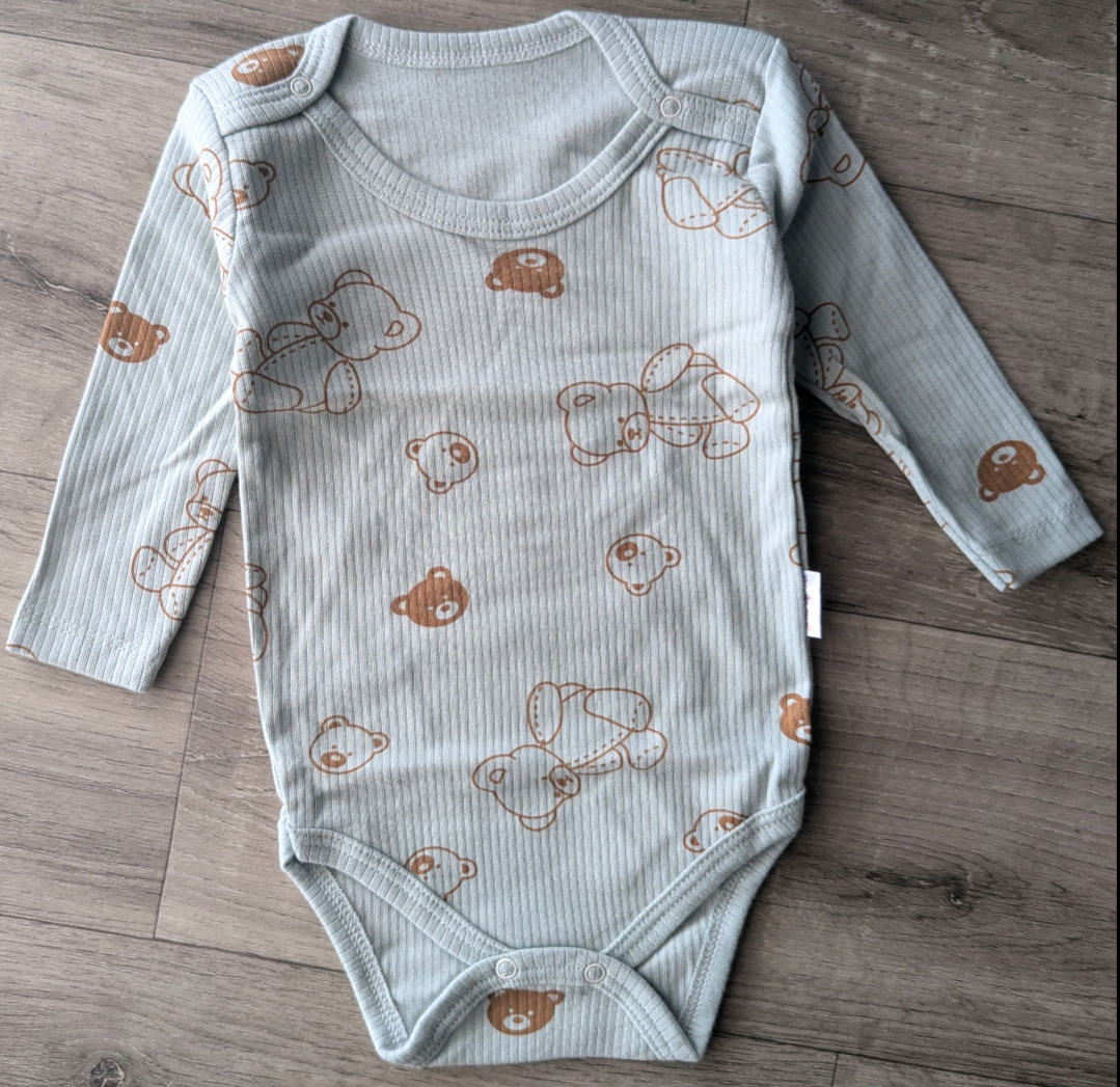 Боди Nayinom "Мишка" зелёный, мальчик 0-3-6-9 месяцев оптом уп. - 4 шт.