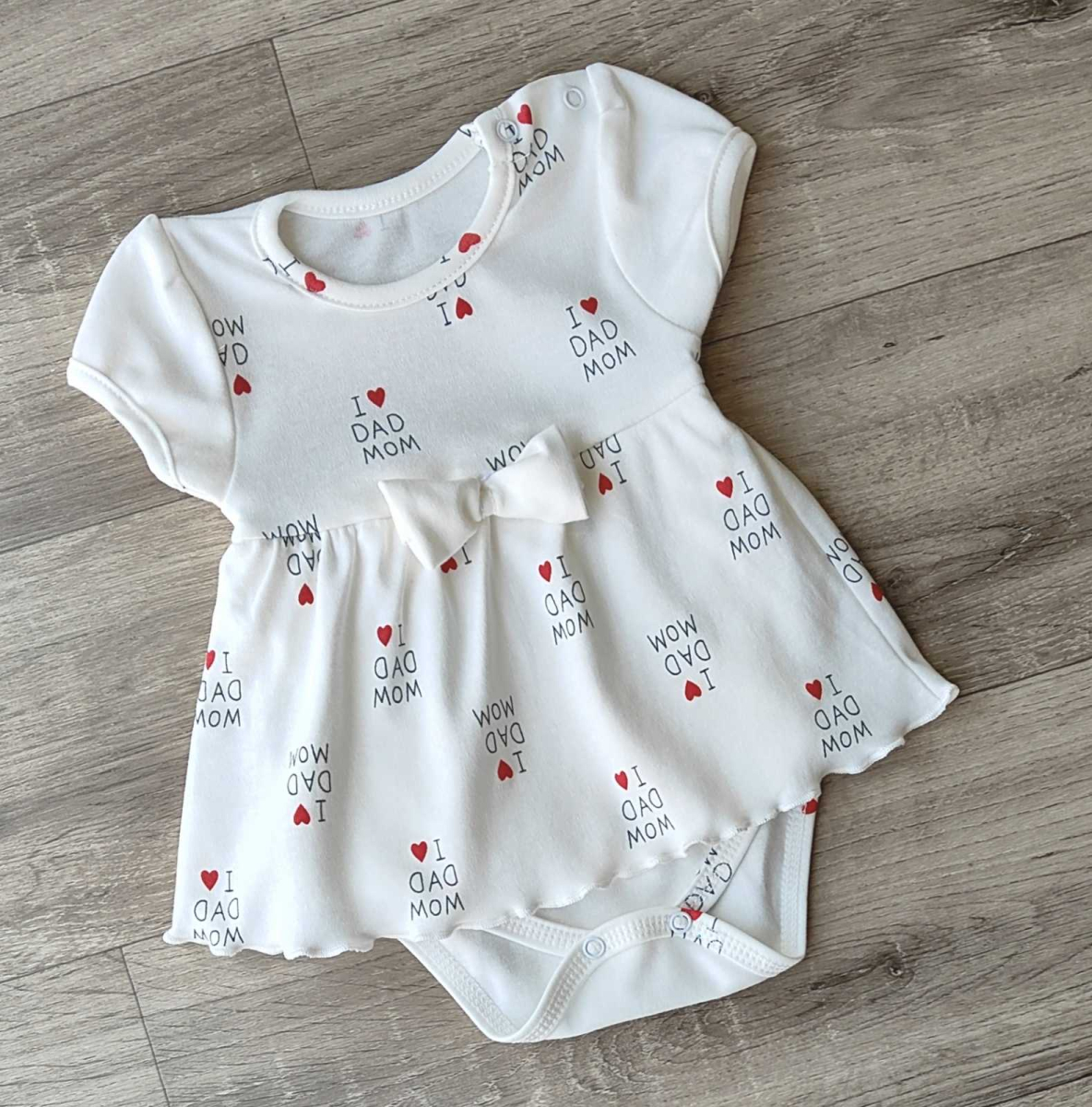 Боди-платье "I DAD MOM" молочный, девочка 3-6 месяцев оптом уп. - 4 шт.