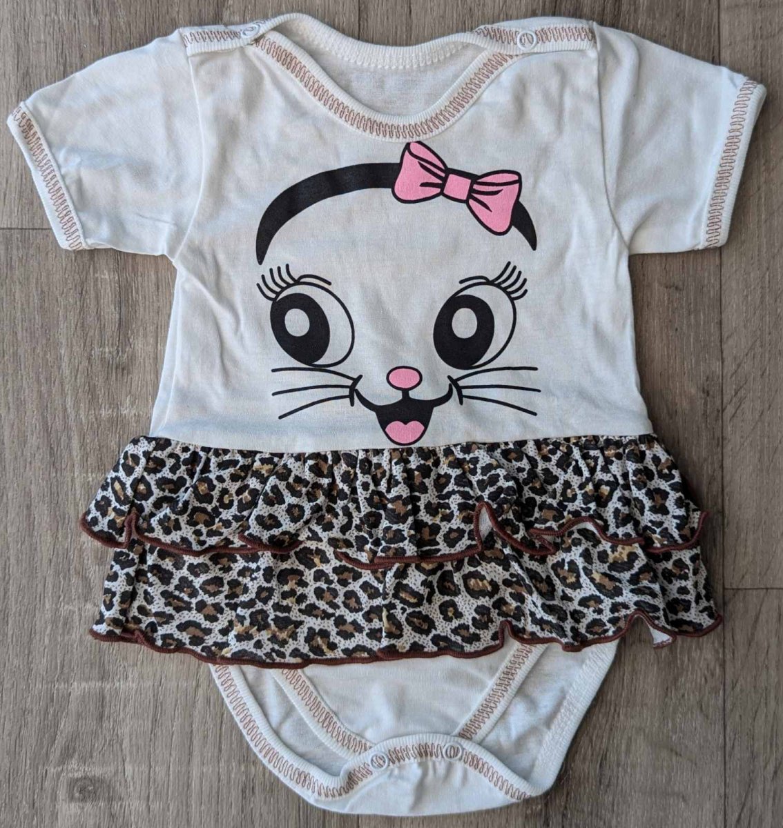 Боди-платье "Кошка" молочный, девочка 6-9 месяцев оптом уп. - 4 шт.