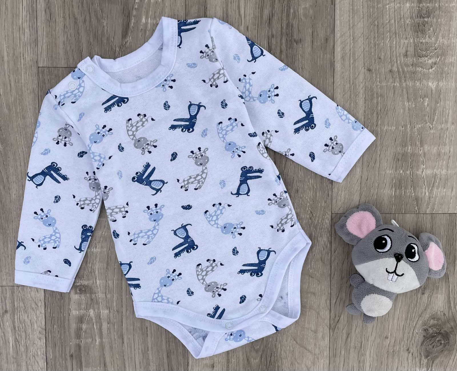 Боди "Жирафик" белый, мальчик 0-3-6-9 месяцев оптом уп. - 4 шт.