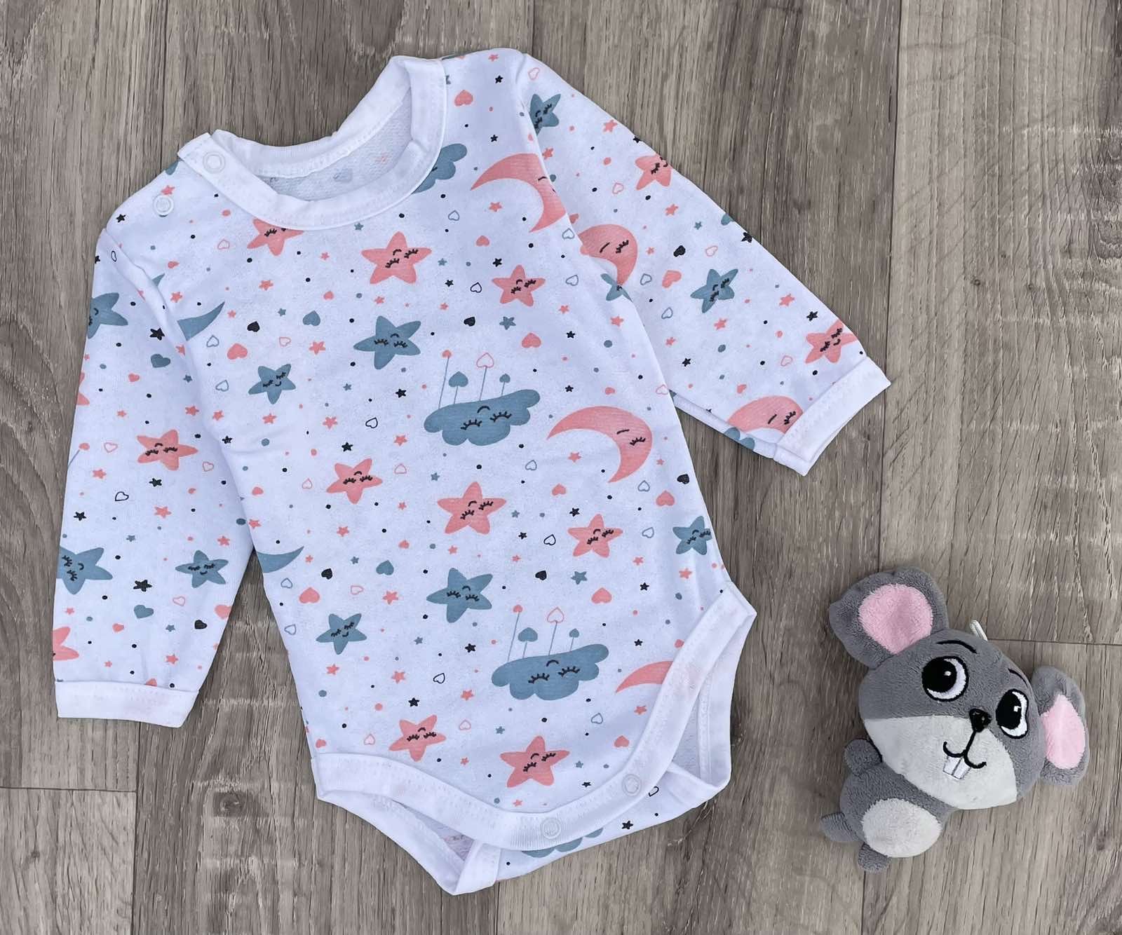 Боди "Звёздочки" белый, девочка 0-3-6-9 месяцев оптом уп. - 4 шт.