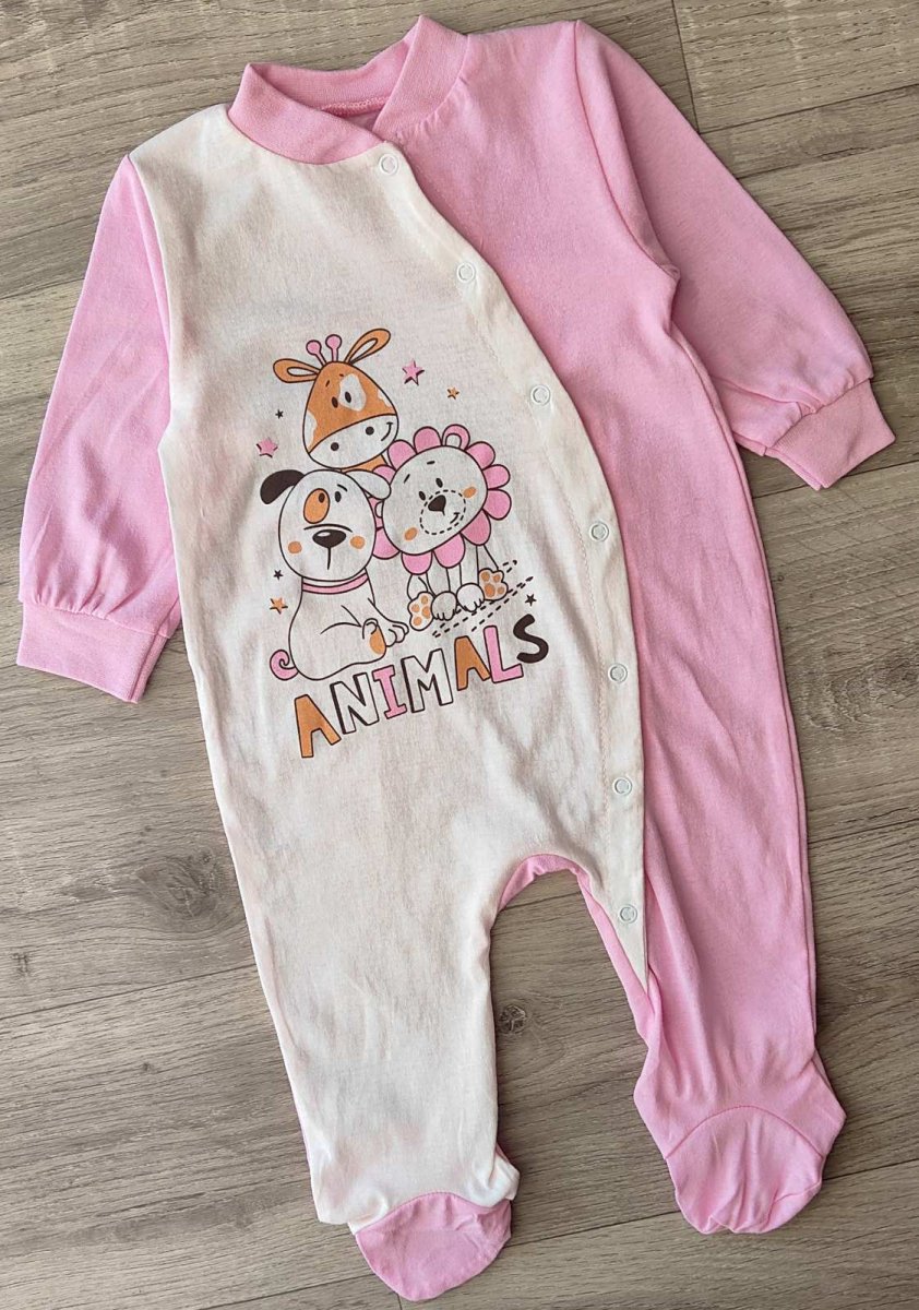 Человечек "Animals" розовый, девочка 6-9 месяцев оптом уп. - 4 шт.