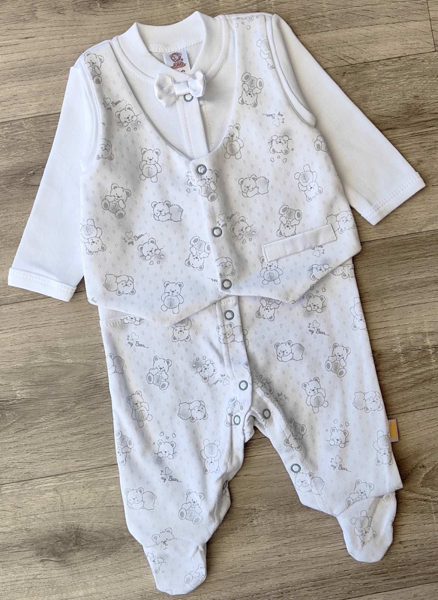 Человечек комбинезон "Медвеженок" , серый, мальчик 0-3-6-9 месяцев оптом уп. - 4 шт.