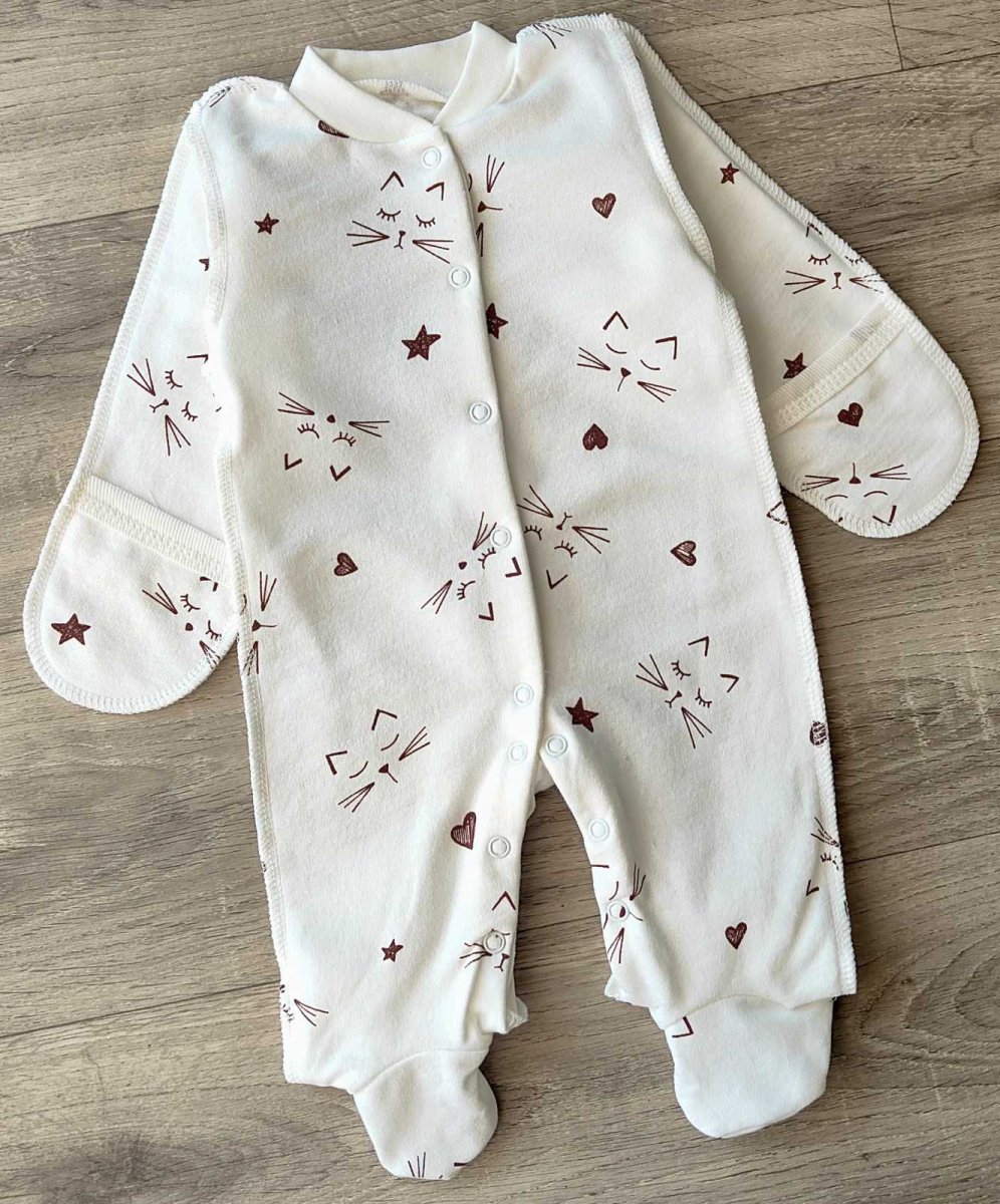 Человечек "Кошка" молочный, девочка 0-3 месяцев, фото