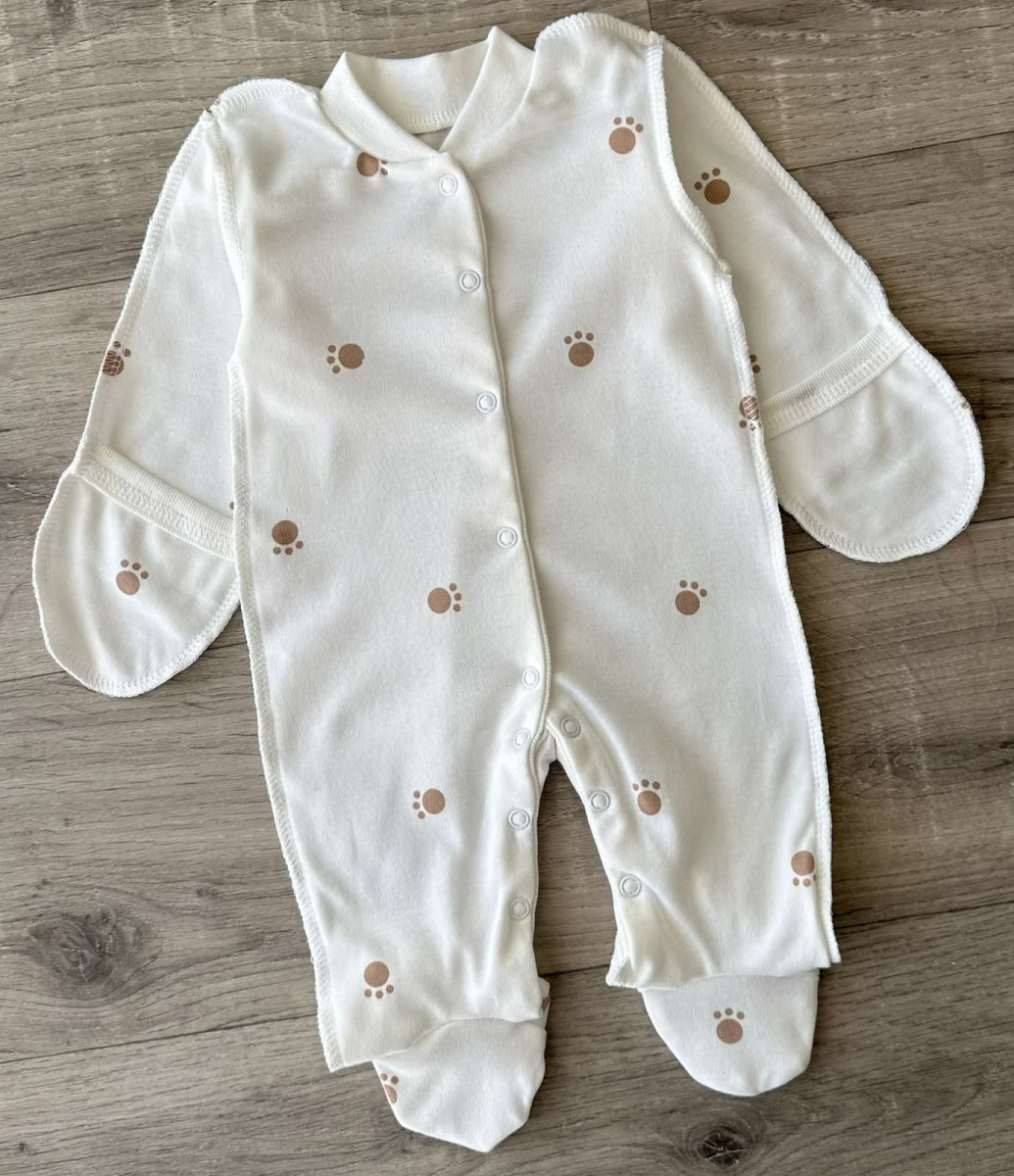 Человечек ''Лапки" белый, унисекс 0-3 месяцев оптом уп. - 4 шт.