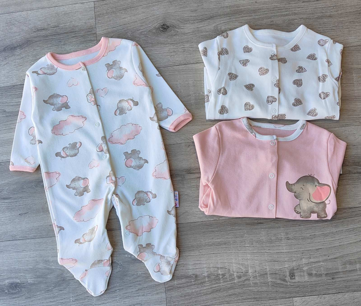 Человечек Midiric "Слоники" разные рисунки, девочка 3 месяцев оптом уп. - 3 шт.
