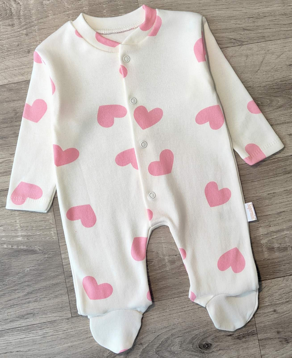 Человечек «Сердечка» розовый, девочка 0-3-6 месяцев оптом уп. - 3 шт.
