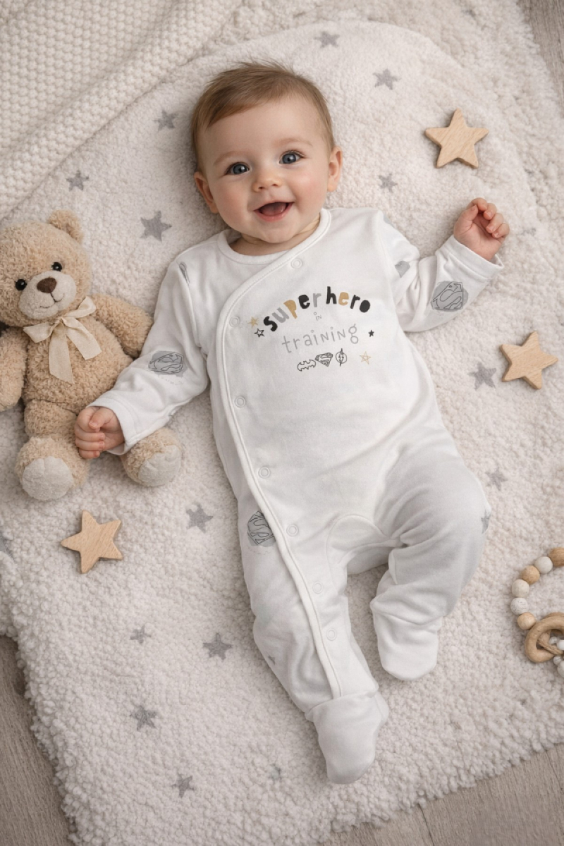 Человечек «Superhero» молочный, мальчик 9-9-12 месяцев оптом уп. - 3 шт.