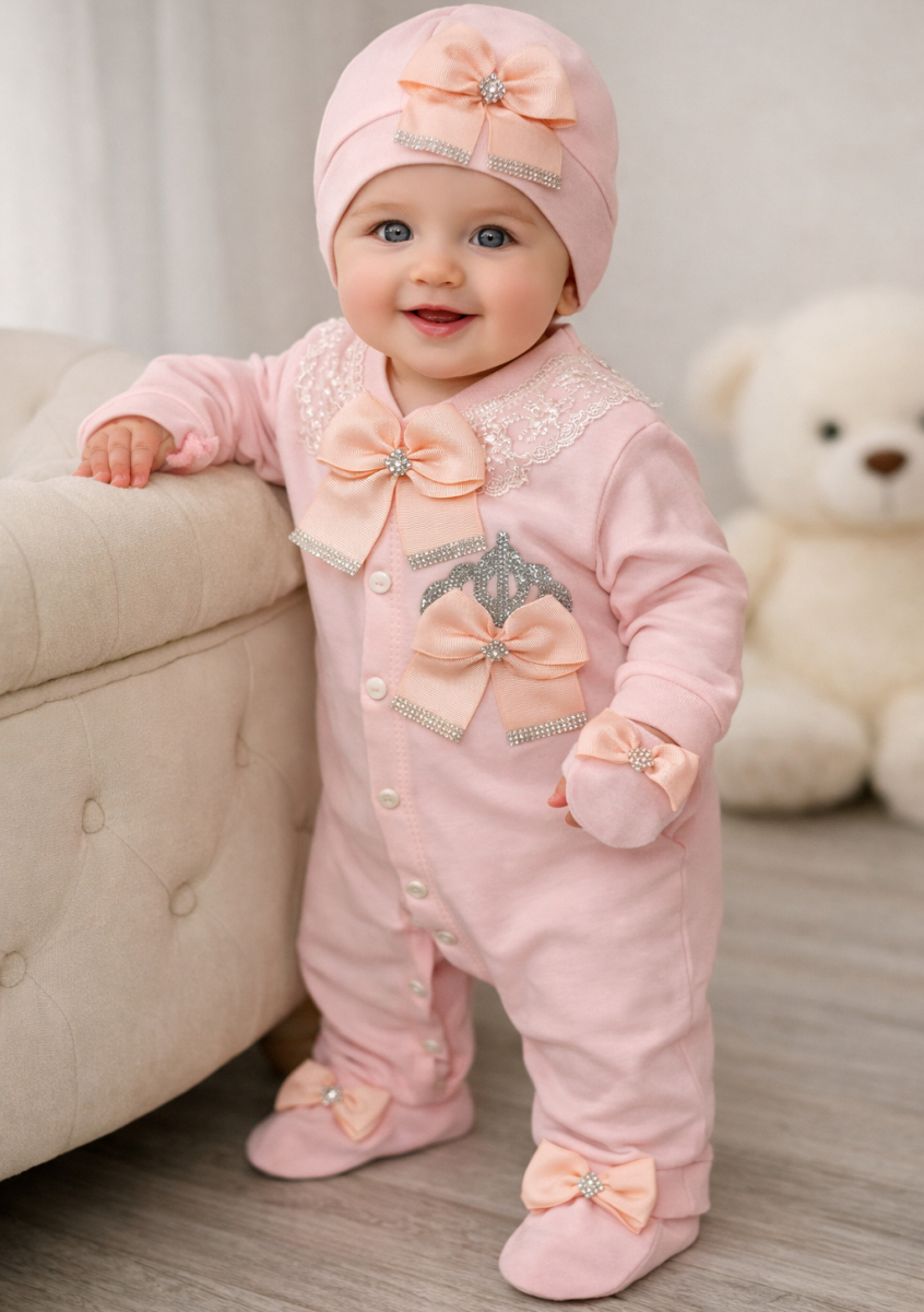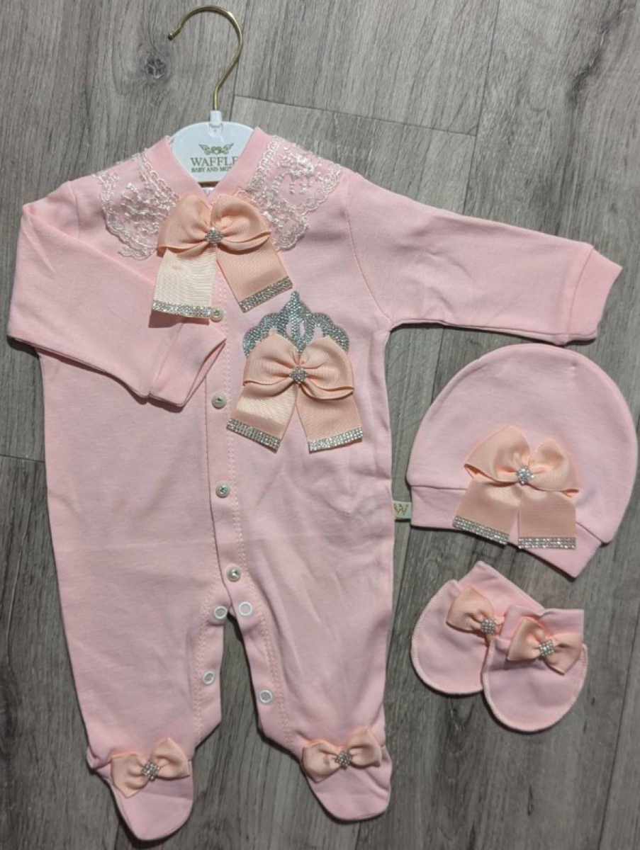 Человечек Waffle "Корона" персиковый , девочка 0-3-6 месяцев оптом уп. - 3 шт.