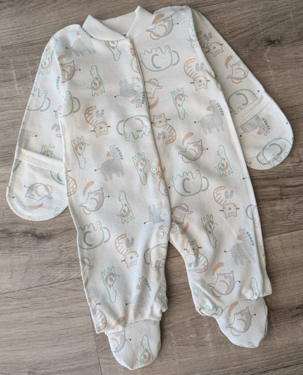 Человечек "Зверьки" молочный, унисекс 0-3 месяцев оптом уп. - 4 шт.