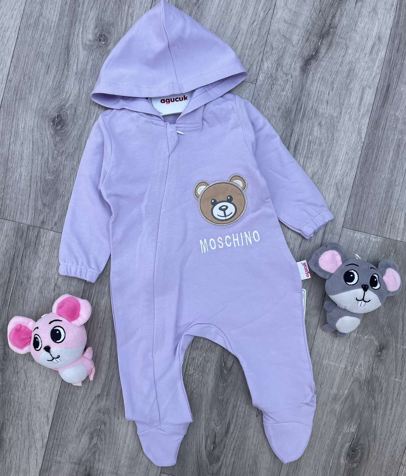 Чоловічок Agucuk "Moschino Bear" бузковий , дівчинка 0-3-6-9 місяців оптом уп. - 4 шт.