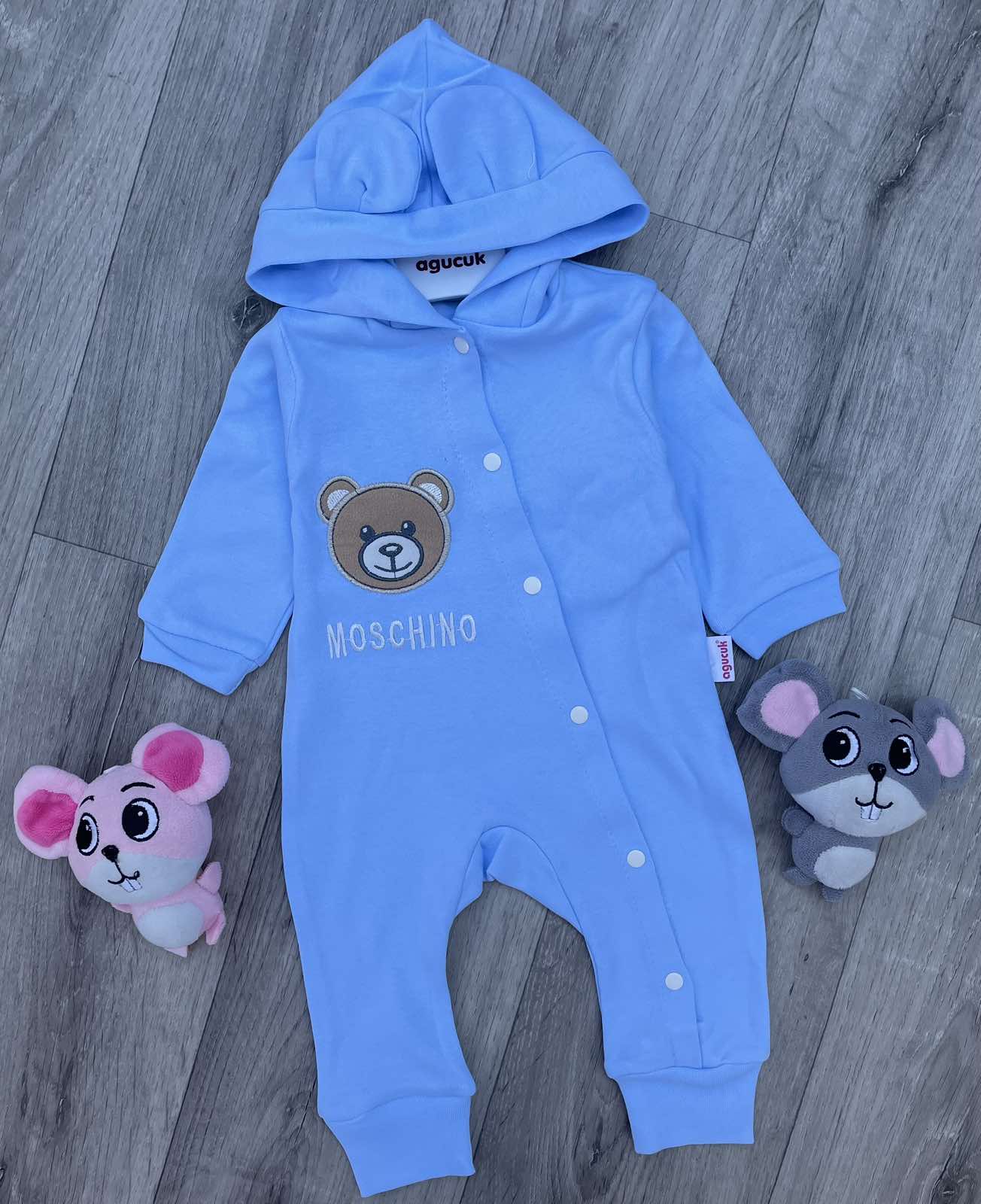 Человечек Agucuk "Moschino" голубой , мальчик 0-3-6-9 месяцев оптом уп. - 4 шт.