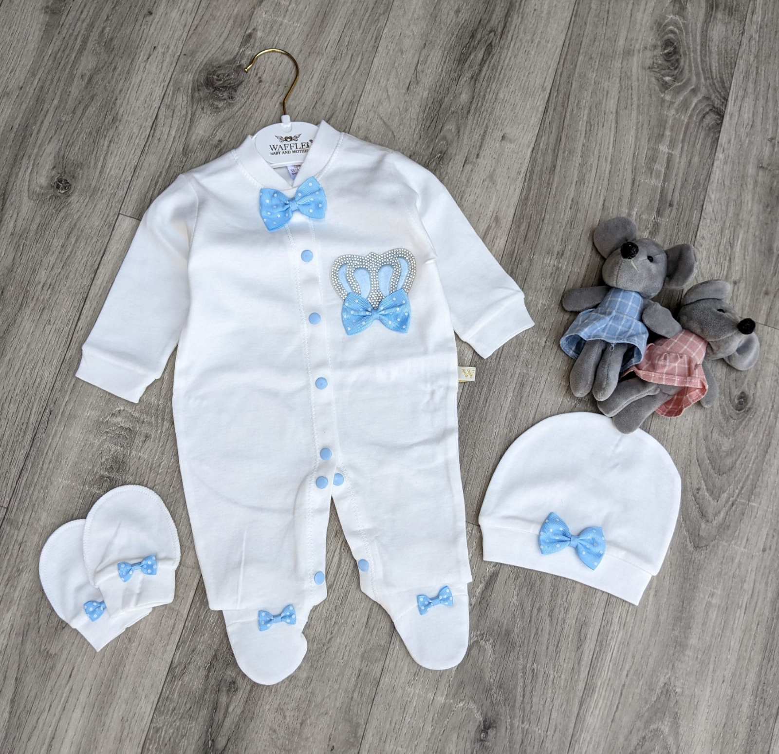 Человечек Amore "Корона" белый с голубым, мальчик 0-3-6 месяцев, фото