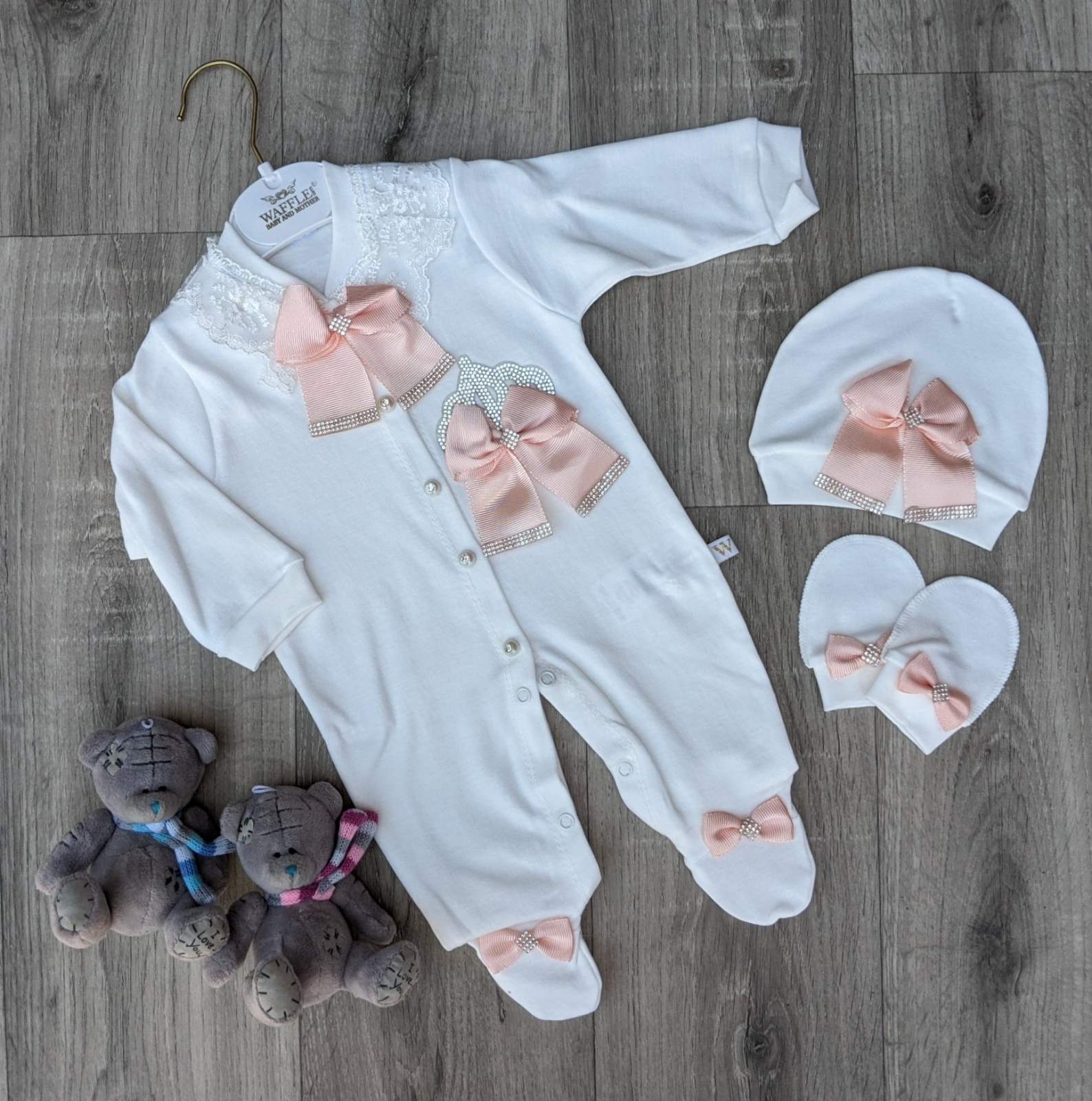 Человечек Amore "Корона" белый с персиковым, девочка 0-3-6 месяцев оптом уп. - 3 шт.